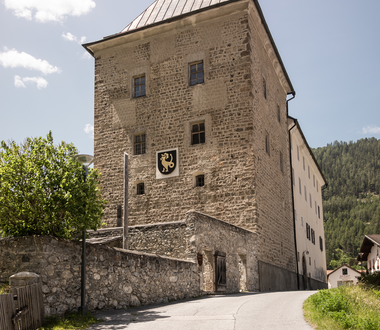 Der Treffpunkt ist unterhalb des Schlosses vor dem Gemeindeamt Ried im Oberinntal.