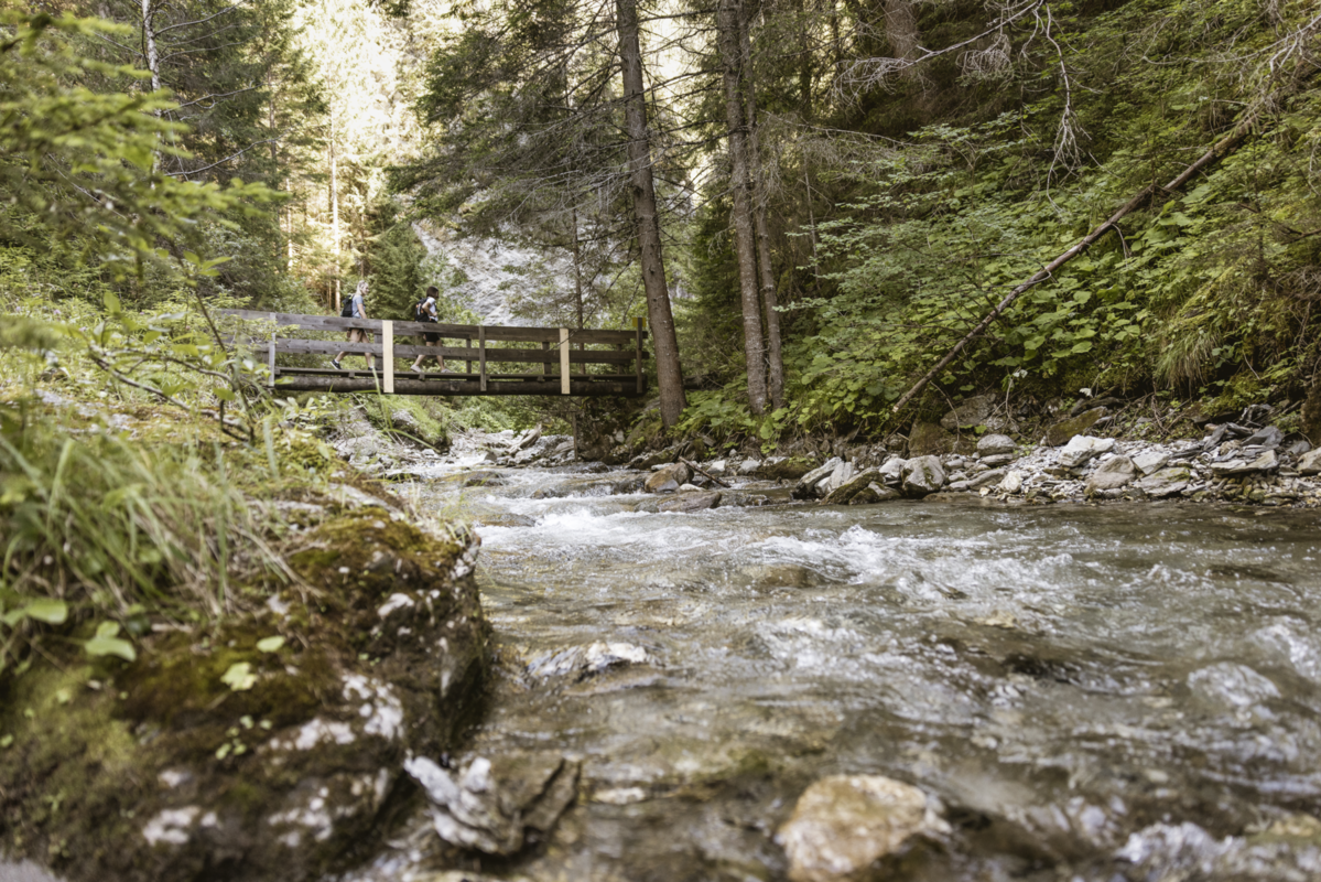 Eine der beliebtesten Wanderungen ist der wildromantische Klammsteig, wo nicht nur seltene Farne und Gräser beheimatet sind. Man startet beim Kreisverkehr im Ortsteil Dorf und folgt dem Radurschlbach flussaufwärts. Der Weg wird immer schmäler und führt über viele Brücken, sogar über eine Hängebrücke, vorbei an Felsüberhängen und ständig in Begleitung vom Klang des tosenden Wassers. Ein Tipp besonders an heißen Sommertagen - die Luftfeuchtigkeit entlang dieser Schluchtenwanderung ist sehr erfrischend. So gut wie am Ende der Klamm kann man sich spontan für den Rückweg über Greit oder über den Radurschlweg entscheiden. Zum Weiler Greit folgt ein kleiner Aufstieg, wo der Berghof (Restaurant Do. & So.) zur stärkenden Einkehr einlädt. Parkmöglichkeiten finden Sie beim Kreisverkehr Pfunds (keine Parkmöglichkeit direkt bei der Schlucht).
