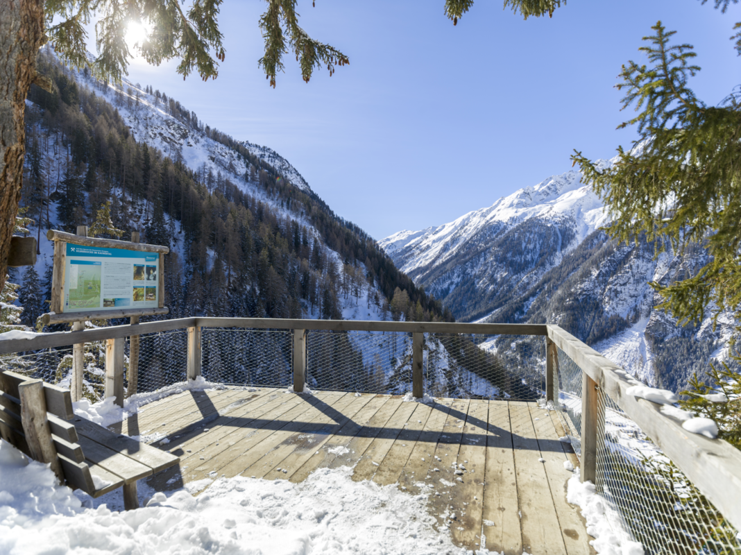 Das Kaunertal begeistert mit einem Königreich aus Dreitausendern, wilder und stiller Natur, Kultur und magischen Plätzen. Einer davon ist mit Sicherheit die „Adlerblick“ Aussichtsplattform. Diese wurde auf einer über 100 Meter hohen Felswand oberhalb von Feichten im Kaunertal errichtet. Darüber hinaus begeben sich die Wanderer auf eine Reise in die Vergangenheit: Zum einen beim ebenfalls neu errichteten Aussichtspunkt „Bergwerksblick“ und zum anderen beim Rundwanderweg zu den Knappenlöchern und der Aufbereitungshütte.
