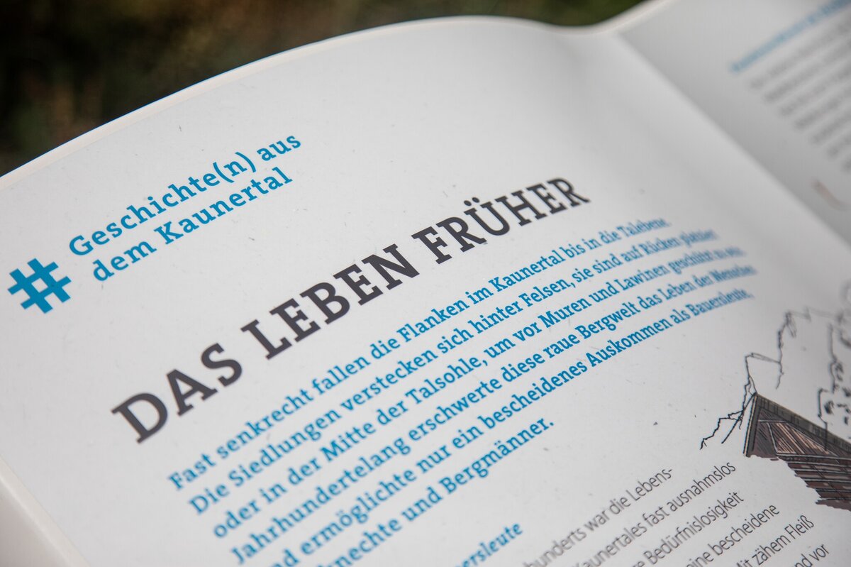 Entdecken Sie bei einer Wanderung oder einem Spaziergang die Vergangenheit des Kaunertales. Überdimensionale Bücher erzählen spannende Ereignisse und Geschichten aus einer längst vergangen Zeit. Entlang beliebter Spazier- und Wanderwege im Tal finden Sie informative Wissens-Stationen.