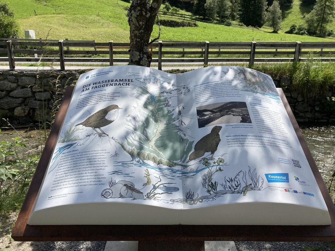 Das Buch "Die Wasseramsel" finden Sie entlang dem Talwanderweg|Faggenbach von Feichten nach Grasse.