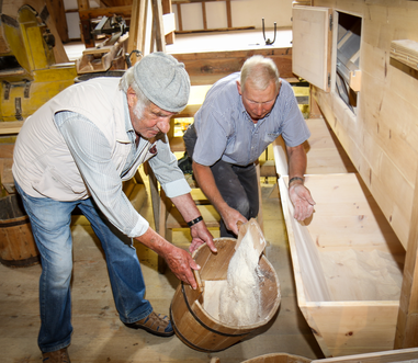 Unsere alte Mühle wurde bereits 1856 schriftlich erwähnt, bis heute wird hier noch im Schaubetrieb Getreide gemahlen. in den Sommermonaten backen die Bäuerinnen hier fleißig Brot- ein kulturelles Highlight, das man vor allem probiert haben muss! Die Säge ist seit der Restaurierung 1998 nicht nur voll funktionsfähig, sondern wurde auch als Kulturdenkmal ausgezeichnet.