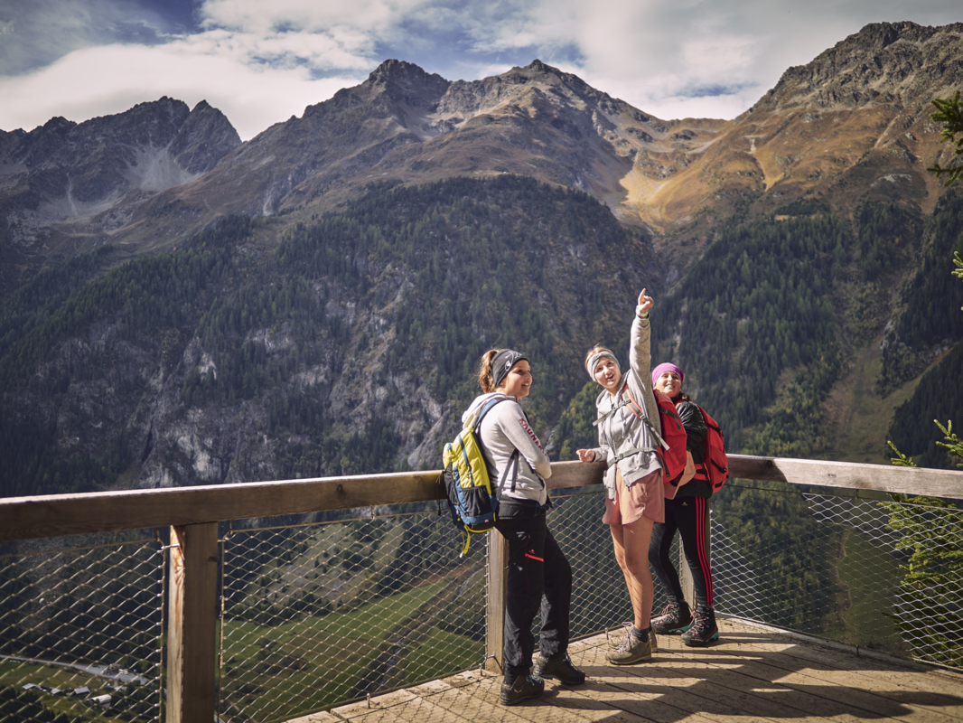 Das Kaunertal begeistert mit einem Königreich aus Dreitausendern, wilder und stiller Natur, Kultur und magischen Plätzen. Einer davon ist mit Sicherheit die „Adlerblick“ Aussichtsplattform. Diese wurde auf einer über 100 Meter hohen Felswand oberhalb von Feichten im Kaunertal errichtet. Darüber hinaus begeben sich die Wanderer auf eine Reise in die Vergangenheit: Zum einen beim ebenfalls neu errichteten Aussichtspunkt „Bergwerksblick“ und zum anderen beim Rundwanderweg zu den Knappenlöchern und der Aufbereitungshütte.