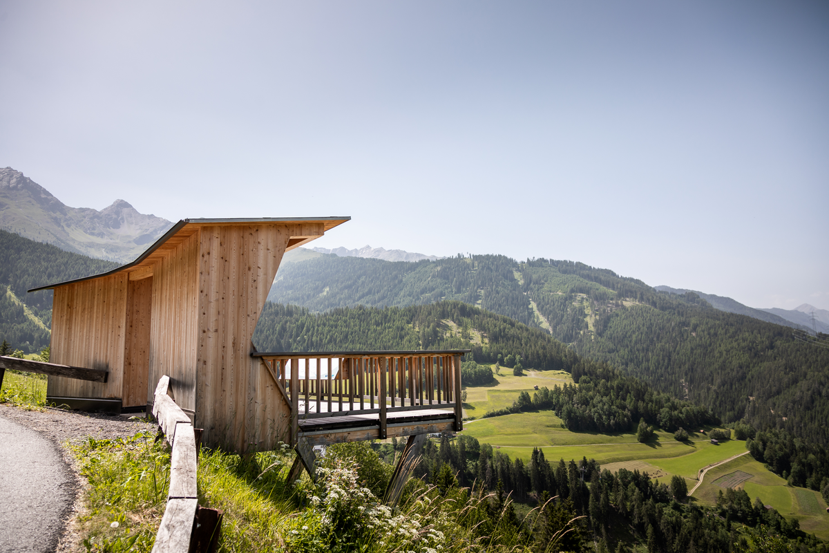 Einen wunderbaren Rundblick auf die umliegenden Bergwelt bietet die Aussichtsplattform Fendels "Hochegg". Verbunden mit einem Spaziergang durch das idyllische Bergdorf Fendels erreichen Sie die Plattform über den Rundweg Fendels.