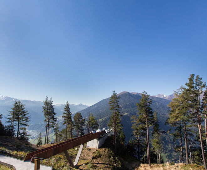 Die Aussichtsplattform direkt am Naturparkhaus gelegen ist ein Bindeglied von Geschichte, Kultur und Natur. Der Gache Blick, am nördlichen Ausläufer des Engadiner Fensters wurde von enormen Kräften und in geologischen Zeitdimensionen geschaffen. Im Vergleich dazu reduziert sich die Zeit von der Besiedlung der Region bis heute (Kulturgeschichte) auf einen kurzen Moment - gerade lang genug um das eindrucksvolle Panorama in vollen Zügen zu genießen.