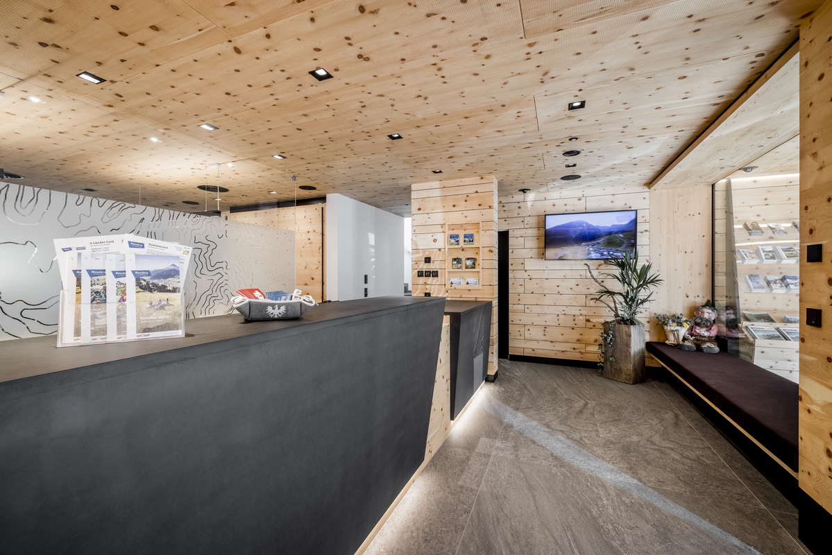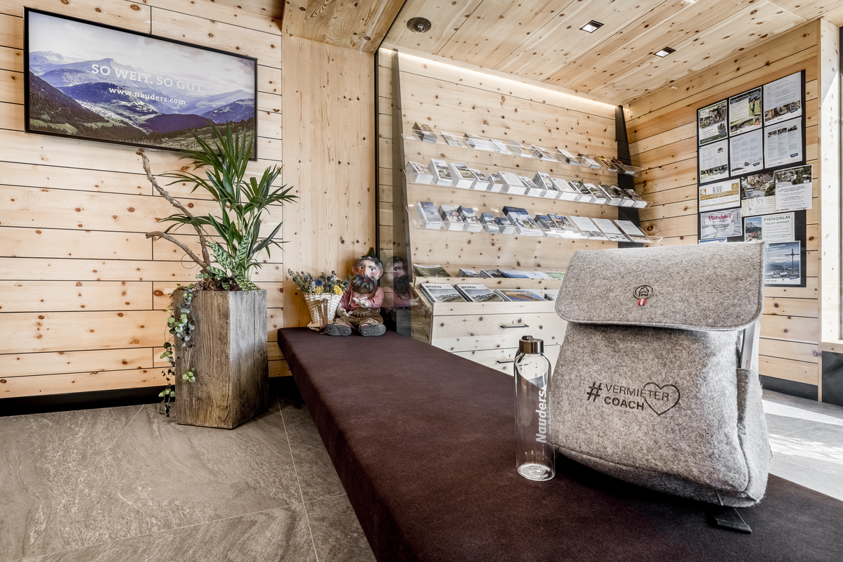 Seit November 2020 erstrahlt das Infobüro Nauders in neuem Glanz. Für einen Gästeservice in angenehmer Atmosphäre wurde das Service Center erweitert bzw. mit heimischen und nachhaltigen Materialien neu gestaltet. Der neue komfortable Selbst-Service Bereich ist täglich von 07.00 - 22.00 Uhr geöffnet bzw. für alle Gäste zugänglich und bietet alle wichtigen Informationsmaterialien zur freien Entnahme.