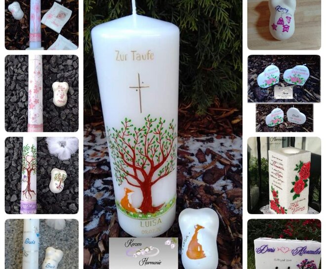 Taufkerzen, Hochzeitskerzen, Trauerkerzen, Geburtstage, Firmenkerzen etc... Kerzen für alle Anlässe; Tirol's einzigartige Kerzenmalerei; Individuell, persönlich, mit Liebe zum Detail