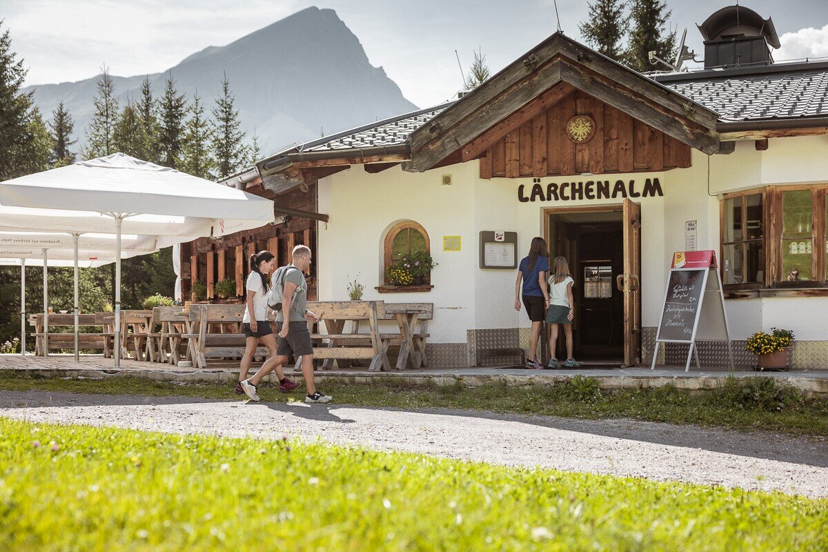 Die Lärchenalm erreicht man nach einer kurzen Wanderung über die Martanneswiesen oder über Kompatsch. Die Hütte ist sehr ruhig gelegen und bietet einen herrlichen Ausblick auf die schweizerische, österreichische und italienische Bergwelt.