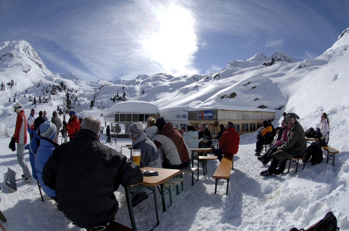An der Talstation der Ochsenalmbahn am Kaunertaler Gletscher befindet sich das Restaurant Ochsenalm – ideal für bzw. gegen den kleinen Hunger oder für einen guten Cappuccino an der Bar.