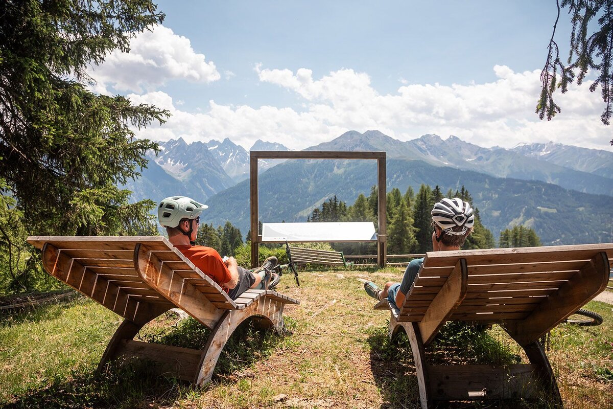 Die Tour startet beim Gemeindeamt in Kauns und verläuft Richtung Prutz. Nach dem "WILIBU" rechts abbiegen, an der nächsten Abzweigung links abbiegen, dann immer rechts halten und dem Auchtweg bis zum Weiler Goldegg folgen. Abwechselnd auf asphaltierten und Schotter-Untergrund windet sich die kurvige Strecke durch weitere Weiler bis zur Hauptstraße. Nach deren Überquerung an der Kapelle Falpaus rechts vorbeifahren, nach ca. 1 km zuerst links und kurz darauf rechts abbiegen. Auf einer Forststraße (kurzer Zwischenstopp beim Schnadigen Weiher nach ca. 0,5 km möglich) schlängelt sich die Tour in zahlreichen Kehren abwechselnd durch Wiesen- und lichtes Waldgebiet bis zur Aifneralm hinauf. Ein besonderes Highlight ist das Knottenkino am Aifnerstein - 5 Gehminuten von der Alm entfernt. Der Retourweg erfolgt auf derselben Strecke.
