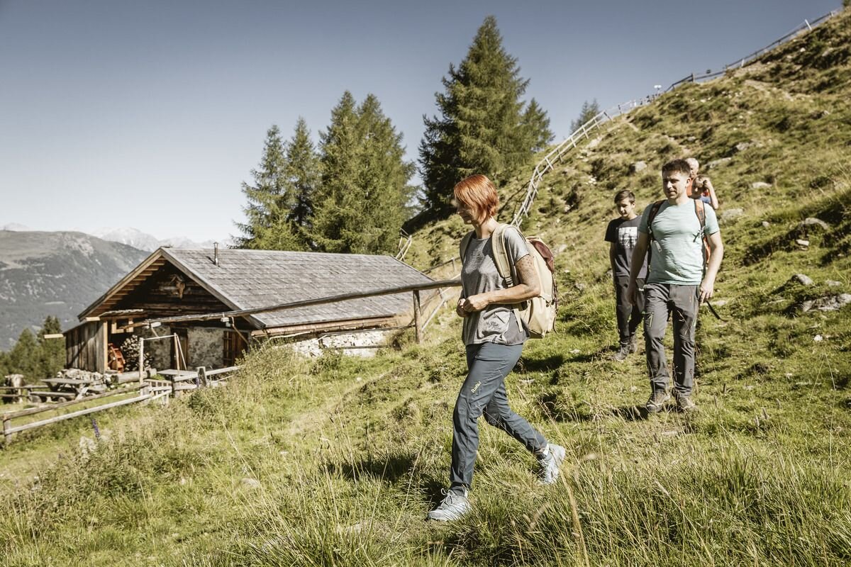 Selber Rückweg, oder hinunter an der Stalanzer Alm (bewirtschaftet) vorbei nach Ried (ca. 3-4 Stunden langer Abstieg).