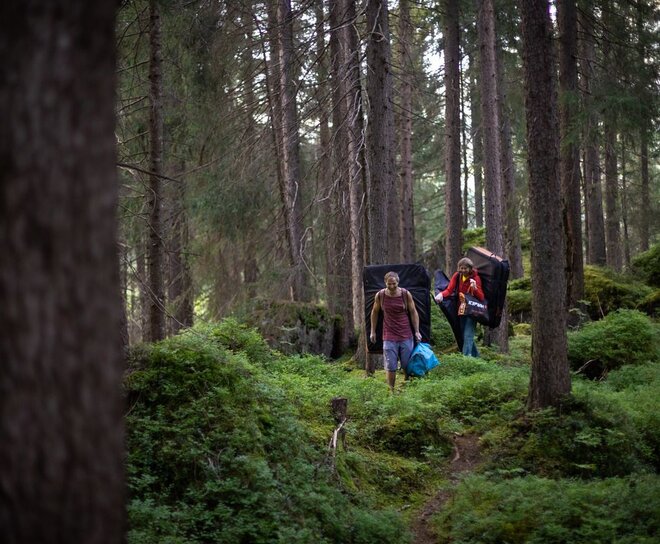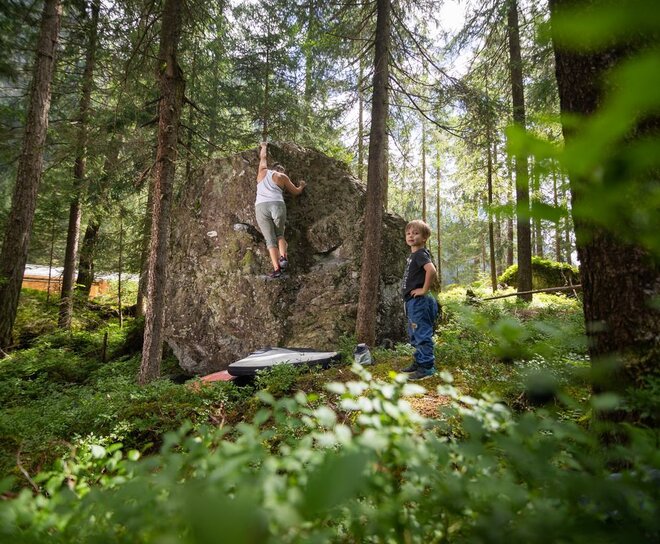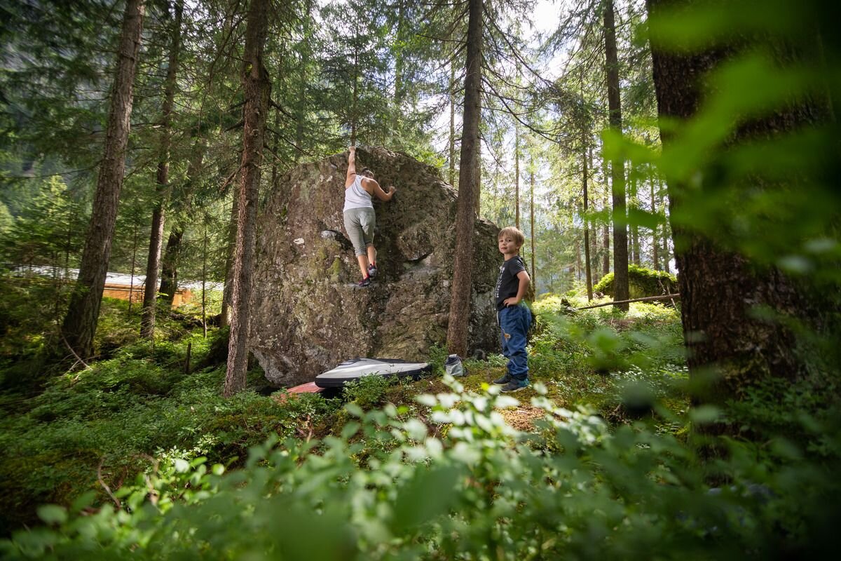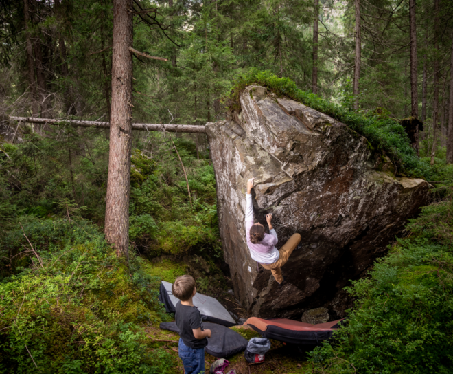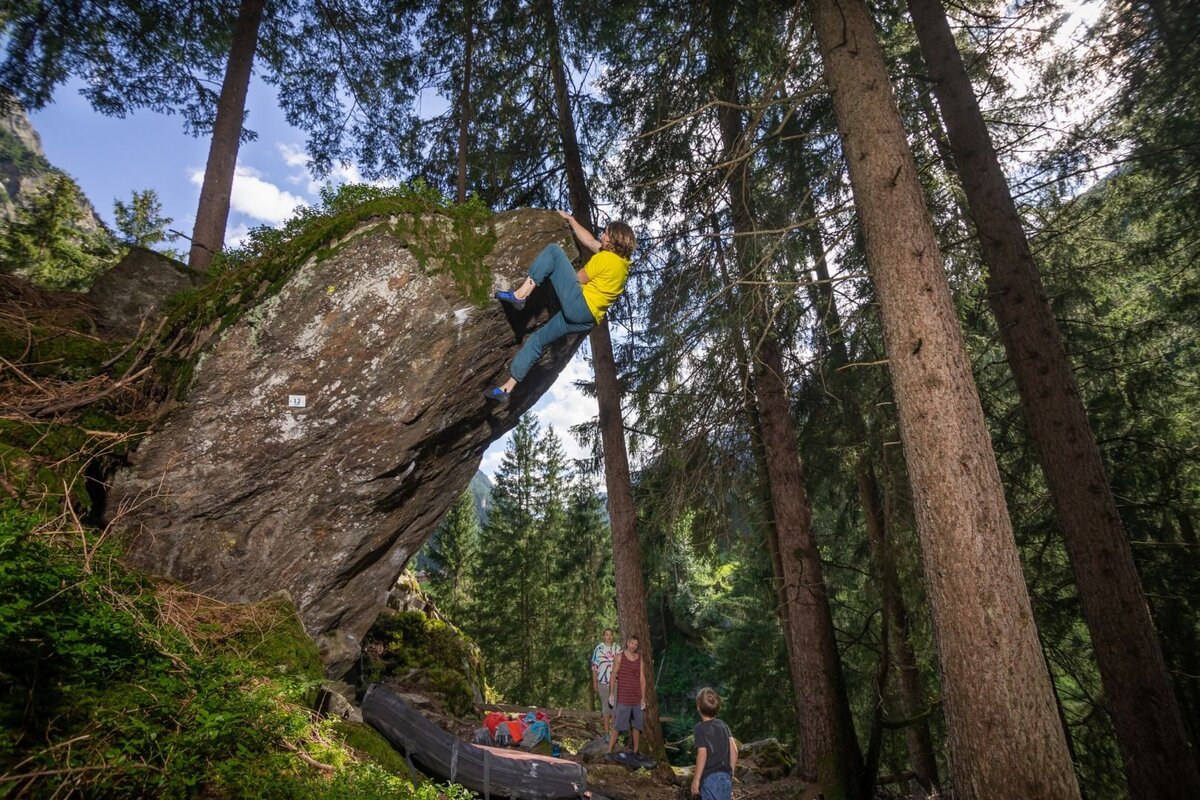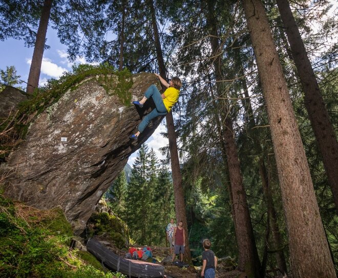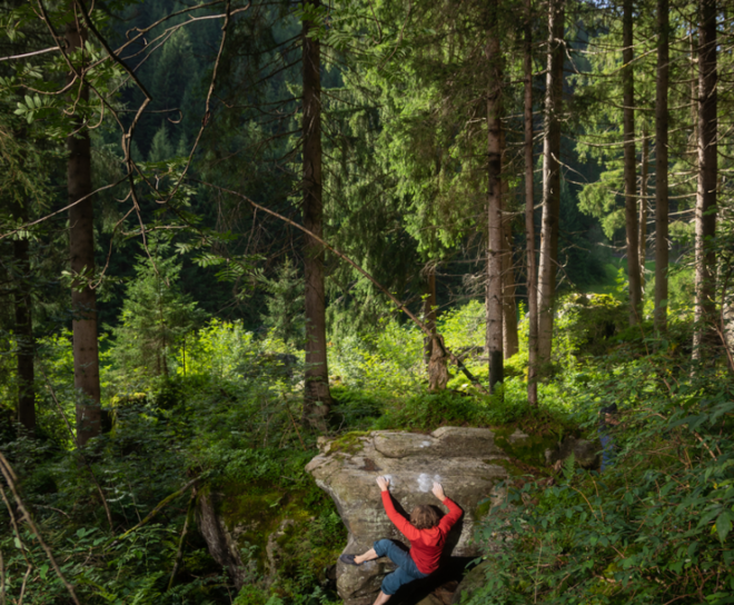 Das Bouldergebiet Höll befindet sich in sonniger Lage zwischen den Weilern Boden und Vergötschen. Es eignet sich ideal für Anfänger und Fortgeschrittene auch für Profis gibts es ein paar Schmankerl und einige offene Probleme die noch zum Knacken sind. Die über 140 Boulderprobleme mit einer Schwierigkeit von 4c - 8a+ verteilen sich auf 30 Granitblöcke. Die beste Zeit zum Kletten ist von Mai bis Oktober. Aufgrund der Lage auf 1.200 m eignen sich die Blöcke am Wandesrand bei kälternen Tagen und die im dichteren Wald für die wärmeren Tage. Der Zustiegt liegt je nach Block zwischen 1 und 5 Minuten.