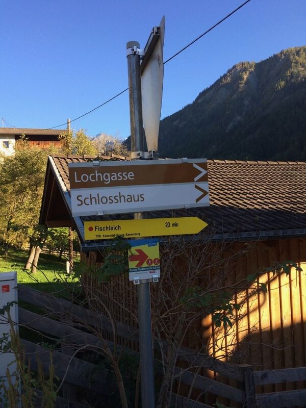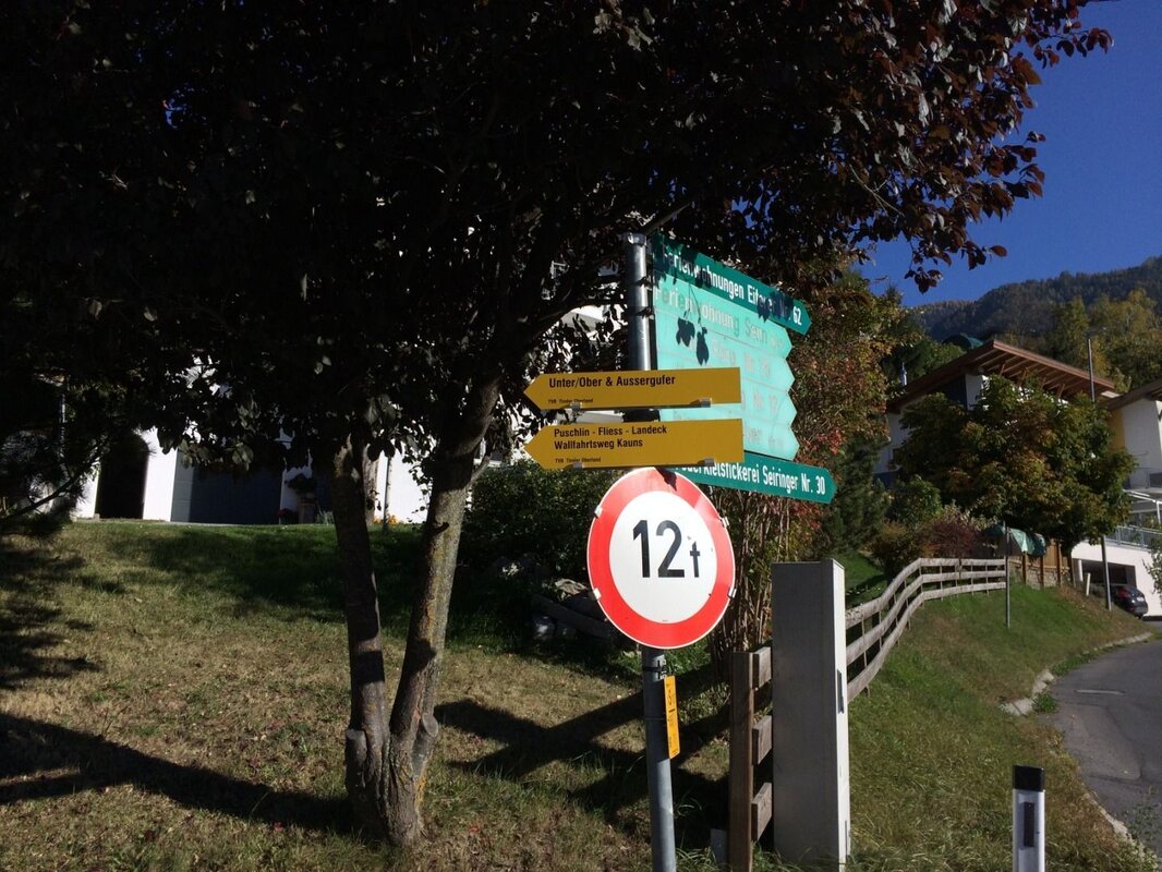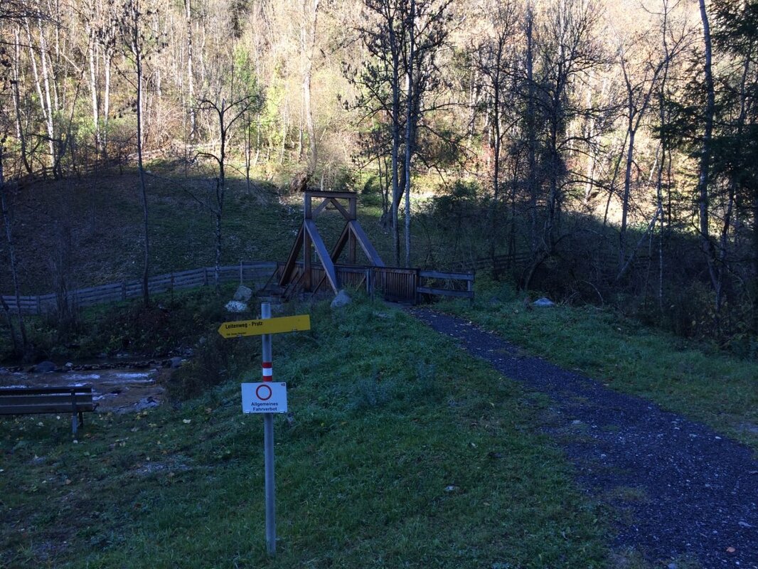 Infobüro Prutz | Fußgängerbrücke an der Kaunertal Landesstraße, nahe der Fischerranch (Ausgangspunkt Beschreibung!) | Parkplatz Gemeindeamt Faggen | Gemeindeamt Kauns