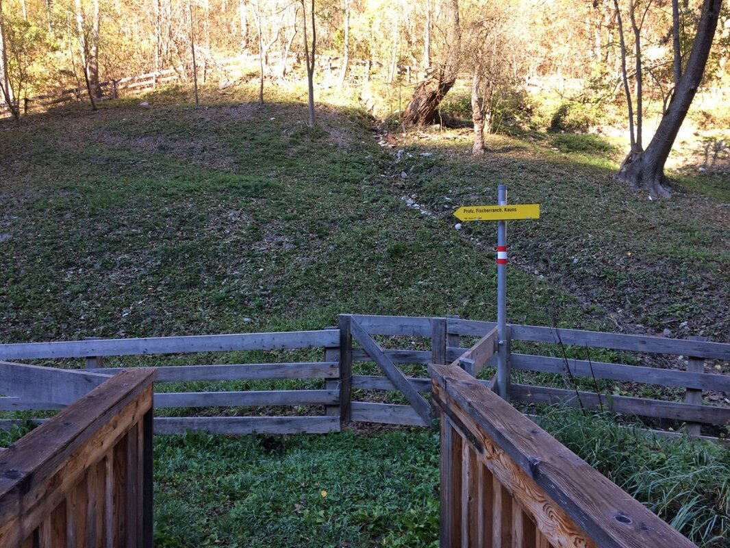 Nach einem schönen Waldstück gelangt man durch die herrlichen, artenreichen und sonnenverwöhnten Mähwiesen bergauf und erreicht in angenehmer Steigung das Dorf Kauns. In Kauns wird die Hauptstraße überquert und man trifft auf die Beschilderung zum „Fischteich“. Unterhalb der schönen Streuobstwiesen, führt ein Steig nun steiler begab zur Fischerranch und weiter zurück zum Ausgangspunkt.