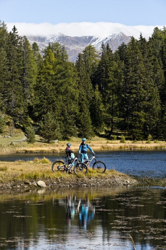 Entlang der Via Claudia Augusta geht es zur Talstation der Schönebenbahn. Von dort geht es entlang der Fahrstrasse über die Reschneralm, Grüner See undSchwarzer See nach Nauders.