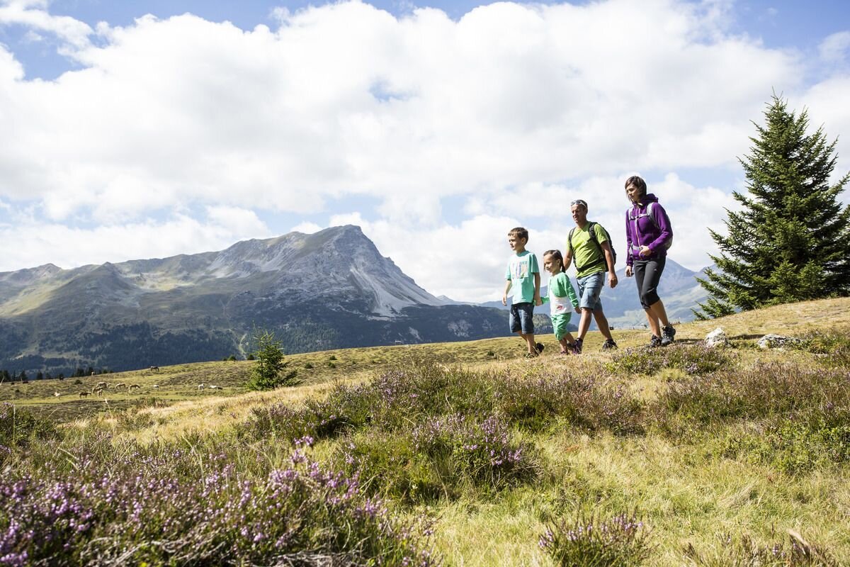Von dort aus folgt man dem Wegverlauf bis nach Plamort wo sich der Aussichtsfelsen befindet. Von dort aus hat man einen tollen Auslblick Richtung Vinschgau und die Ortlergruppe.
