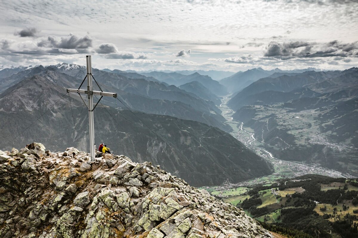 Die folgenden 230 hm sind felsiger und steiler. Auf diesem Wegstück kann man gelegentlich eine Hand zum Festhalten gebrauchen. Der Steig in diesem beeindruckenden Ambiente ist ausgetreten, immer gut sichtbar und nicht ausgesetzt. Am großen Gipfelkreuz der Hohen Aifner Spitze angekommen, bietet sich in alle Richtungen eine wirklich grandiose Aussicht, für die man unbedingt etwas Zeit einplanen sollte!