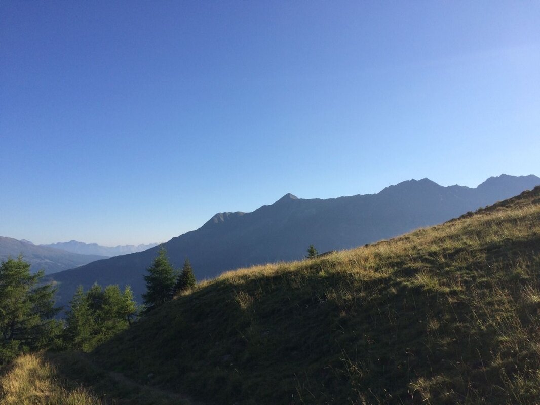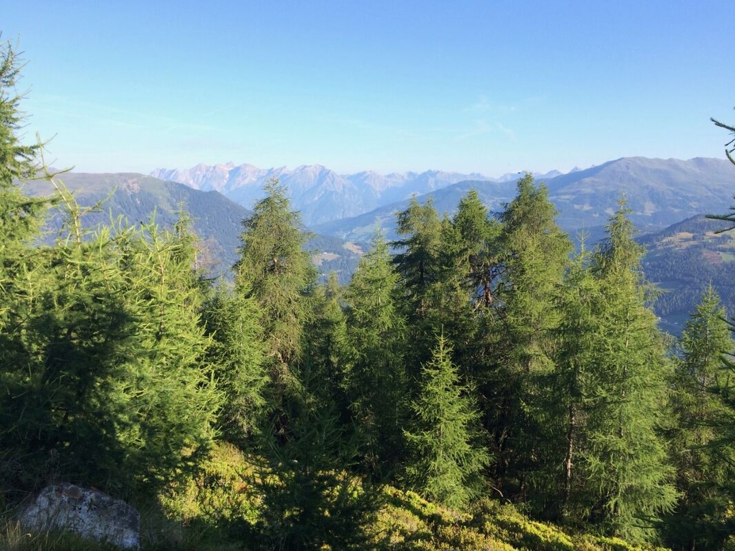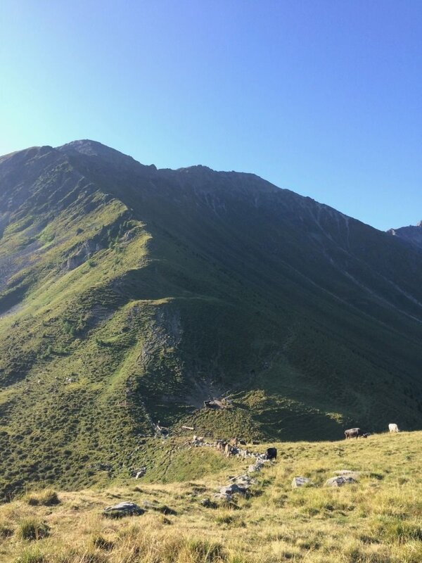 Am Sattel angekommen, folgt man dem Weg hinauf über den deutlichen Bergrücken, immer an seiner rechten Seite bleibend, bis man die flacheren, wunderschön bewachsenen Böden am „Stoanig Mannle“ erreicht.