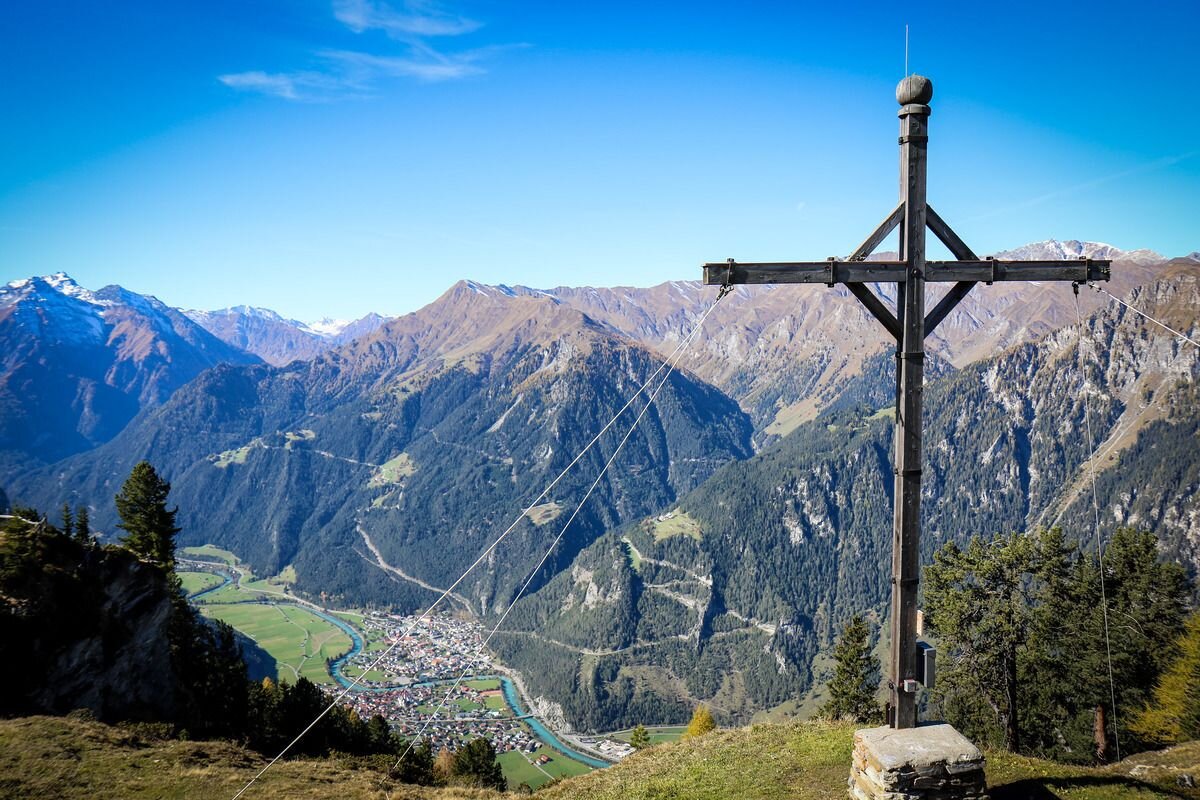 Fahrt nach Greit bis zur Tscheylücke. Hier am Anfang des wunderbaren Hochtals der Pfundser Tschey startet links beim Kreisverkehr ein Forstweg bis zu hochgelegenen Bergwiesen. Die Beschilderung Frudiger weist auf einen Pfad über Weiden vorbei, durch den Zirbenwald hinauf zum Gipfel. Es eröffnet sich ein herrlicher Weitblick auf die benachbarte Samnaungruppe und auf den Ferienort Pfunds. Abstieg vom Kreuz in die Mulde wo es dann links Richtung Tösner Frudier geht, auf einem fast flachen Steig, oberhalb der Kälberhütte geht es weiter bis zum Bio-Top. Vom Jungvieh begleitet führt der Weg bei der Kälberhütte vorbei zum Tösner Frudiger. Der gut markierte Steig Nr. 7 führt zurück zu den Tscheywiesen. Rückwanderung durch die Tscheywiesen an der Kapelle Maria Schnee vorbei bis zum Parkplatz.