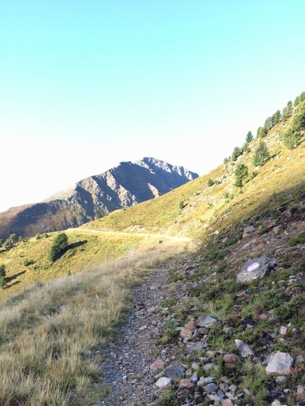 Direkt vor dem Stall der Nassereinalm (2.041 m), steigt man über undeutliche Wegspuren rechts über die Weidefläche bergauf und gelangt auf den oberhalb sichtbaren Karrenweg. Auf diesem wandert man weiter bergauf, bis man den gelben Wegweiser auf 2.140 m erreicht hat. Hier folgt man der Beschilderung zum Schwarzsee nach links und gewinnt so über mehrere Kehren schnell an Höhe. Da diese Tour bereits von Beginn an oberhalb der Waldgrenze verläuft, hat man das Glück, auf jedem Schritt von einem einzigartigen Panorama begleitet zu werden. Auch die Morgensonne ist in dieser Höhenlage meist angenehm und nicht zu heiß.