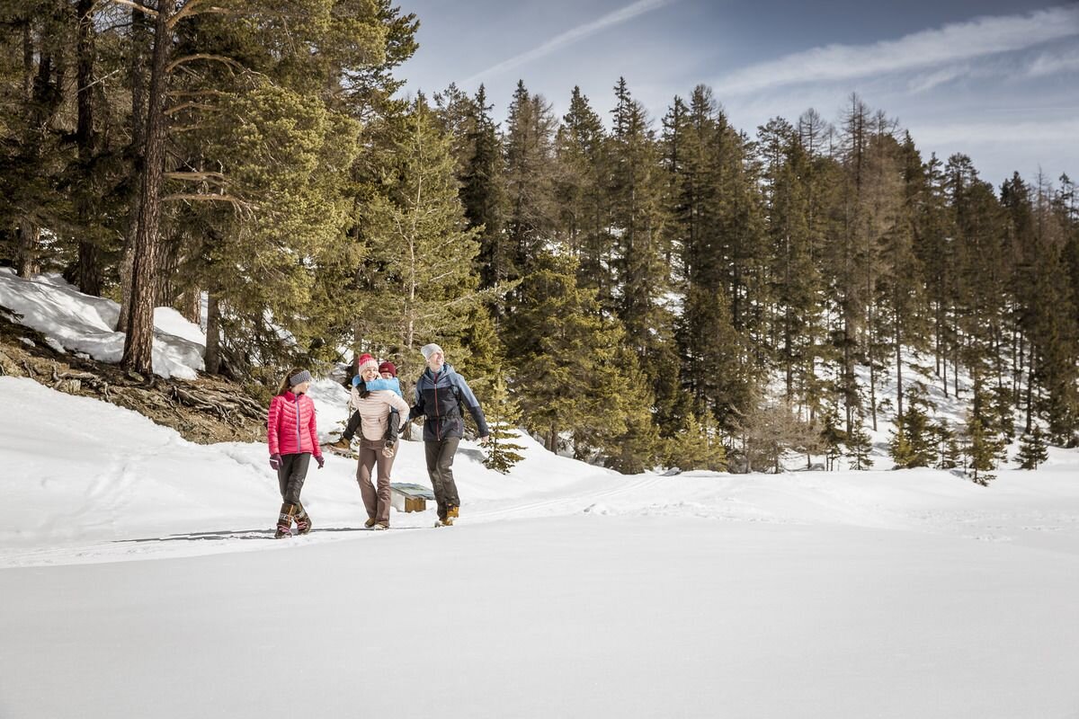 Über die Alte Straße, Wanderweg Nr. 26 wandert man vorbei am Schloss Naudersberg und biegt vor dem Gasthof Marha rechts auf den Wanderweg Nr. 7 ab. Nach Überquerung der Reschen-Bundesstraße folgt man dem Wanderweg Nr. 7 hinauf bis zum Tiefer Gatter. Von dort geht es über Wanderweg Nr. 5 weiter bis zum Stierle. Über den Wanderweg Nr. 8 gelangt man über einen breiten Forstweg zum Grünseeboden und zum Grünen See 1.836 m.