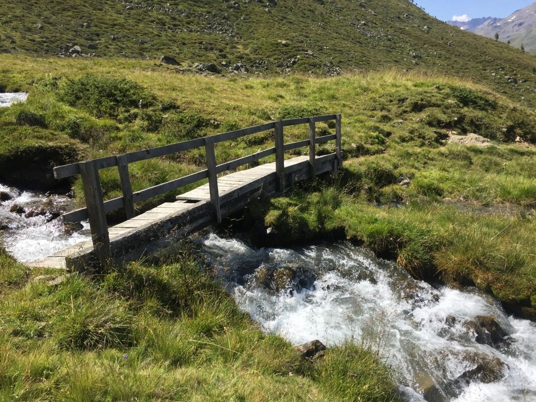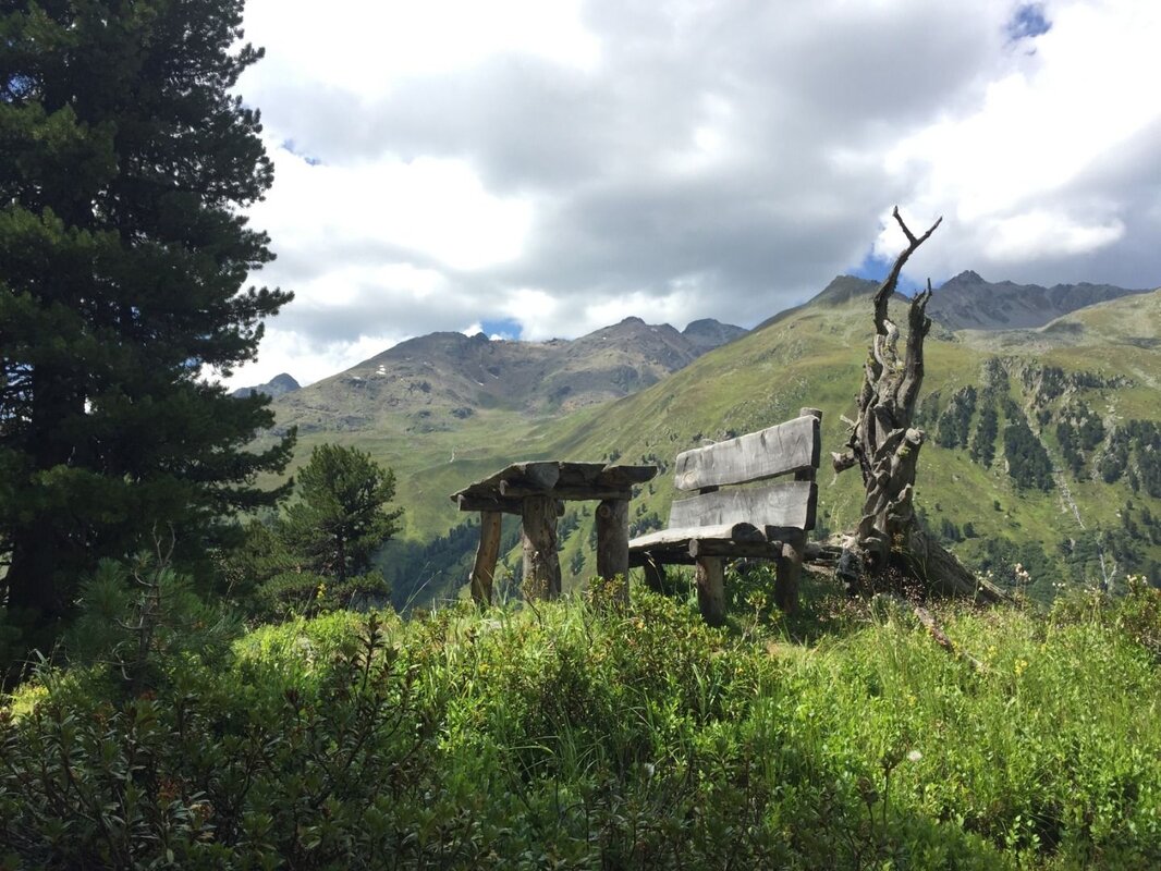 Bei der Jägerhütte angekommen, hat man bereits den Großteil der Höhenmeter überwunden und folgt dem Steig weiter über die wunderschönen Hapmesböden. Alpine Rasen und Zwergsträucher säumen den Weg und schon bald lässt man die letzten Zirben hinter sich. Die fabelhafte Aussicht auf die umliegenden Hochtäler, Berggipfel und natürlich die Weißseespitze mit dem Gepatschferner im Süden lassen die Wanderung besonders kurzweilig erscheinen. Bald schon erreicht man das Wurmetal, an dessen Eingang der Steig über einen markanten Moränenwall (Gletscherstand vor ca. 12.500 Jahren) führt. Kurz nach der Hütte überquert man die Brücke und folgt dem Weg weiter nach Süden in Richtung Bligg. Unterwegs passiert man einen Boden, die so genannte Kanzel, von der aus man den Ausblick noch einmal wunderbar genießen kann. Im gegenüberliegenden Kaiserbergtal, zwischen Plattigkopf und Gebhardspitze, ist sogar ein aktiver Blockgletscher erkennbar.