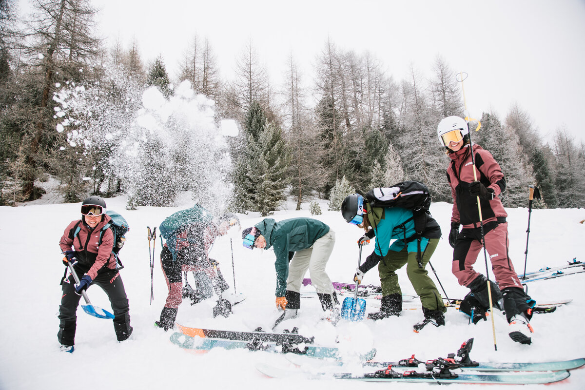 - Safety first: Umfassende Einweisung in Lawinenkunde und den Umgang mit Sicherheitsausrüstung. Du lernst, wie du sicher durch den Tiefschnee kommst und was es alles zu beachten gilt.