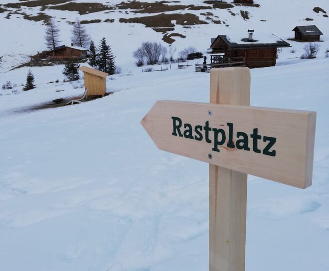 Der neu geschaffene Rastplatz lädt zum Verweilen bei Sonnenschein uns als Rückzugsort bei Wind ein. Zirbenholz und Schaffelle schaffen eine angenehme Atmosphäre. Die Feuerschale und das Brennholz stehen zur freien Verfügung. Bitte achtsam mit dem Feuer umgehen und auf jeden Fall vor dem Verlassen komplett löschen. Bitte hinterlassen Sie den Rastplatz so, wie Sie ihn aufgefunden haben - vielen Dank.