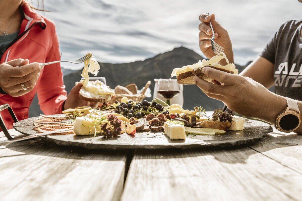 Anschließend führt der Weg gemütlich weiter in Richtung Kobler Alm. Der Rückweg erfolgt über den Almweg Nr. 2, wobei sich immer wieder schöne Ausblicke auf das markante Dreigestirn Piz Mundin, Piz Alpetta und Piz Mezdi bieten.