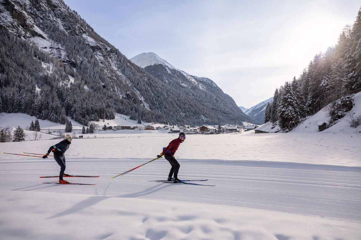 Das Kaunertal ist mit mehr als 25 Kilometern Langlaufstrecken ein beliebtes Ziel für Wintersportler. Weitläufige Wiesen bilden die perfekte Unterlage für Skating oder klassische Läufe und geben den Blick auf die verschneite Bergwelt frei. Eine 8,3 Kilometer lange Tal-Loipe führt durch sämtliche Orte der Naturpark- und Gletscherregion. Die Benutzung aller Langlaufstrecken ist mit der Wintertalcard kostenlos.  Zudem tragen vier Loipen im Tal ein spezielles Gütesiegel: Sie sind barrierefrei und für Langlaufschlitten zugänglich. Auch internationale Profi-Langlaufteams haben bereits im Kaunertal trainiert. DSV-Athletinnen wie Lou Renee Huth, Pia Schratt, und Lena Keck nutzten die zahlreichen Loipen zur Wettkampfvorbereitung. Weitere Informationen und Streckenpläne finden Sie hier....
