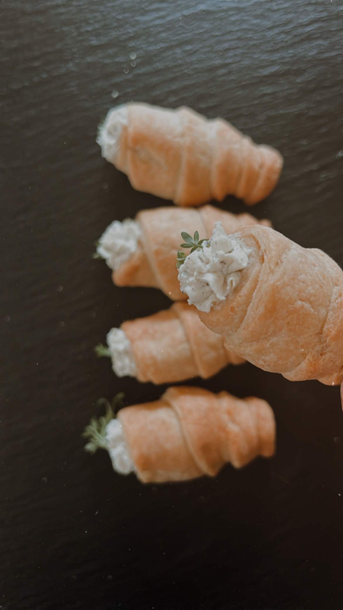 - Die Teigstücke abkühlen lassen und anschließend mit einer Spritztülle die Teigstücke mit der Krenmischung befüllen.