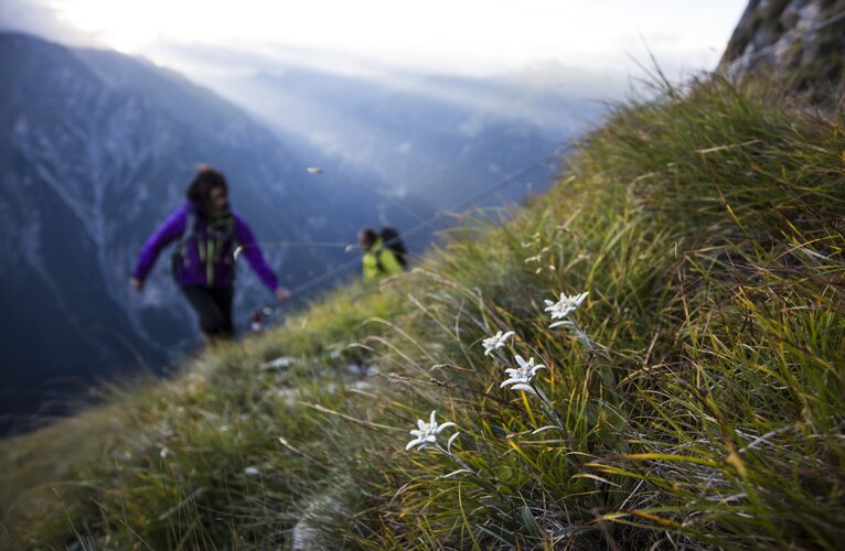 Die Edelweißwiesen sind auf zwei unterschiedlichen Routen erreichbar. Über Parditsch führt der Weg in Richtung Bazahler Köpfe weiter durch die blühenden Bergwiesen oder über die Labaunalm bis zur Fluchtwand. Erfahrene Bergwanderer erreichen das Gipfelkreuz auf 2.328 Metern über den mit einem Stahlseil und zwölf Trittbügeln gesicherten Edelweißsteig. Neben der sportlichen Herausforderung genießt man traumhafte Ausblicke und beeindruckende Bergpanoramen entlang der Strecke.