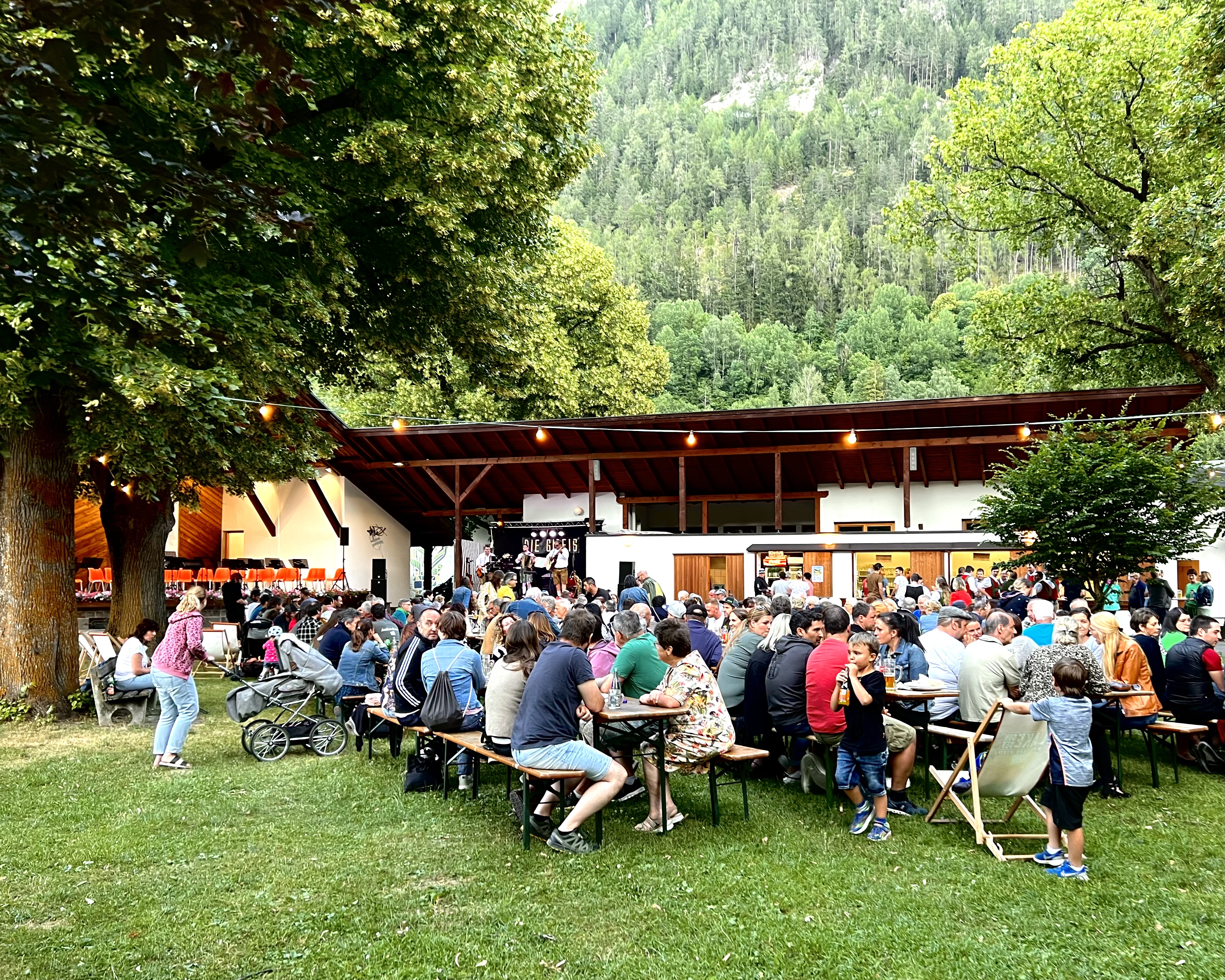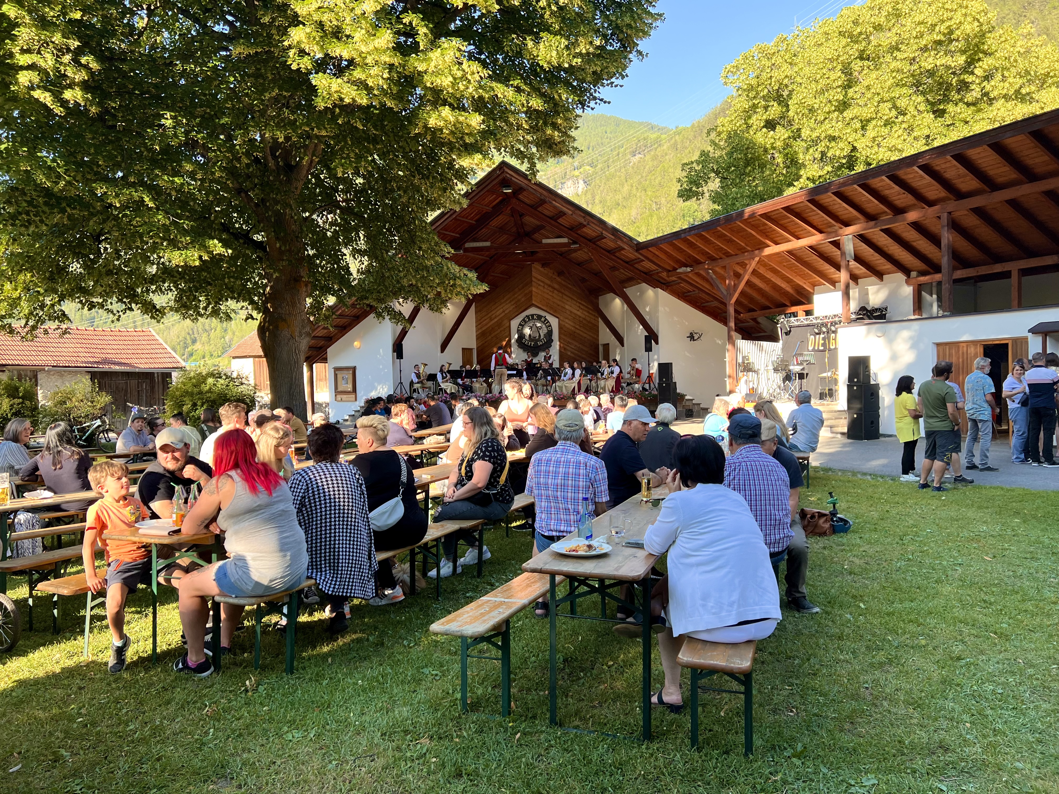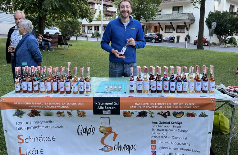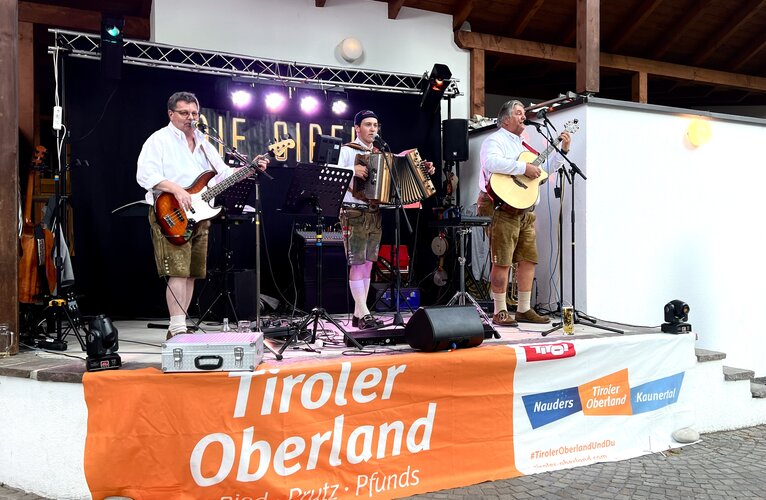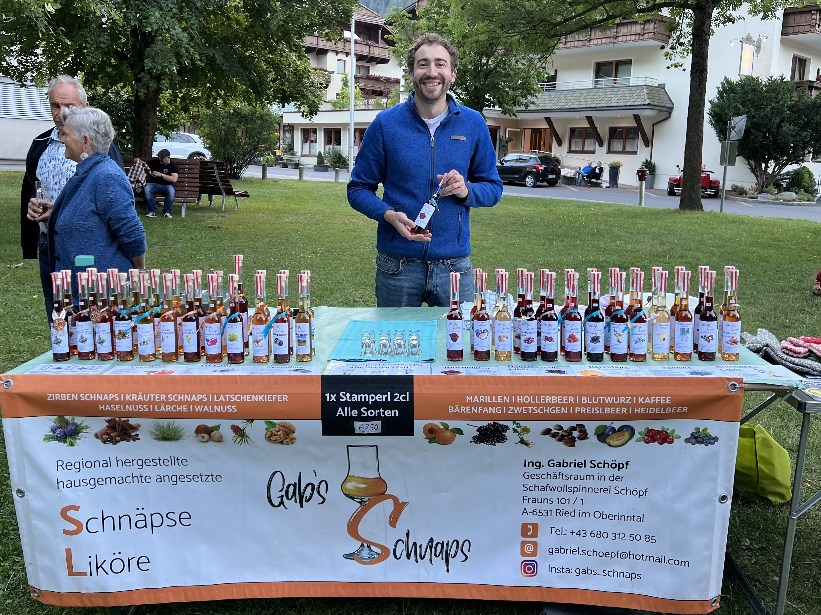 Selbstgemachte regionale Liköre & Schnäpse der Fam. Schöpf aus Ried aber auch Taschen, Bandanas und allerlei Selbstgenähtes von „SU/GI´S“ begeisterten die BesucherInnen. Lustiges Ponyreiten (Ausbildungsstall Tanja Handle) sowie die interessanten Insektenführungen für Familien geführt vom Biologen Christoph Stöckl ließen Kinderherzen höherschlagen. Damit noch lange nicht genug – DIE BERGBRAUER sowie VINUM FUNDUS waren mit heimisch produziertem Bier, sowie Wein vertreten. So wurde mit jedem Schluck ein Stück Tiroler Oberland verköstigt. Auch die musikalische Unterhaltung kam beim Wiesenfest natürlich nicht zu kurz. Eröffnet wurde das Fest mit einem Dämmerschoppen der Musikkapelle Tösens. Anschließend sorgten die Rieder Gipfelstürmer am Lindenplatz für beste Stimmung.