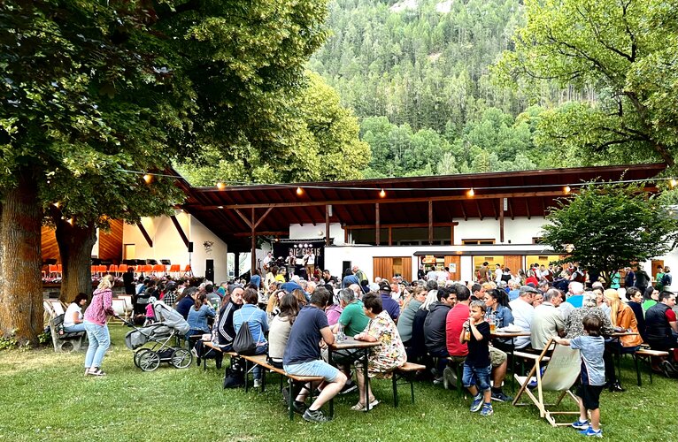 Ein weiteres Juni.Bluama.Zeit-Erlebnis des TVB Tiroler Oberland | Erlebnisraum Tiroler Oberland, bot das Wiesenkino bei lauschigem Ambiente welches in Ried im Schlossgarten des Schloss Sigmundsried stattfand. Ein besonderer Dank gilt hier dem Theaterverein Ried, welcher sich um das leibliche Wohl der BesucherInnen kümmerte. Gezeigt wurden bei freiem Eintritt drei prämierte Filme des INTERNATIONAL NATURE FESTIVALS. Anschließend präsentierte Christoph Schranz, staatlich geprüfter Berg- und Skiführer aus Ried im Oberinntal eine spannende Dokumentation über seine zahlreichen aufregenden Expeditionen (schranzbuaba.at). Die Musikgruppe „Vintage Train“ sorgte vorab für eine mitreisende Unterhaltung und stimmten den Abend gemütlich ein.