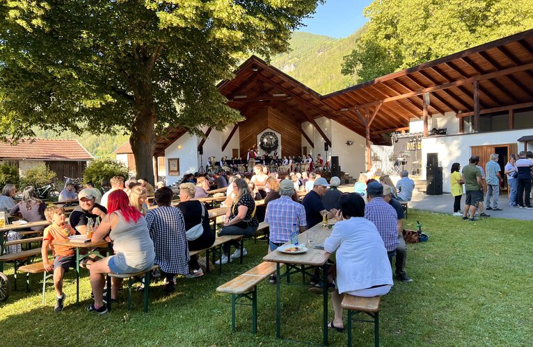 Heimische Vereine sorgten beim Wiesenkino und Wiesenfest mit ihrer tatkräftigen Unterstützung für ausgezeichnete Verköstigung. Die Musikkapelle Ried bereitete beim Wiesenfest allerlei köstliche Spezialitäten vom gschmackigen Wiesenburger bis hin zum klassischen Kaiserschmarrn zu. Gesegnet mit warmen 25 Grad Celsius Außentemperatur und traumhaften Sonnenschein, ließ sich das Fest bei angenehmer Stimmung genießen.