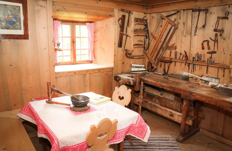 Wir befinden uns in Greit, am Eingang der Pfundser Tschey. Hier steht die Greiter Mühle & Säge - ein kulturelles Highlight für Groß und Klein