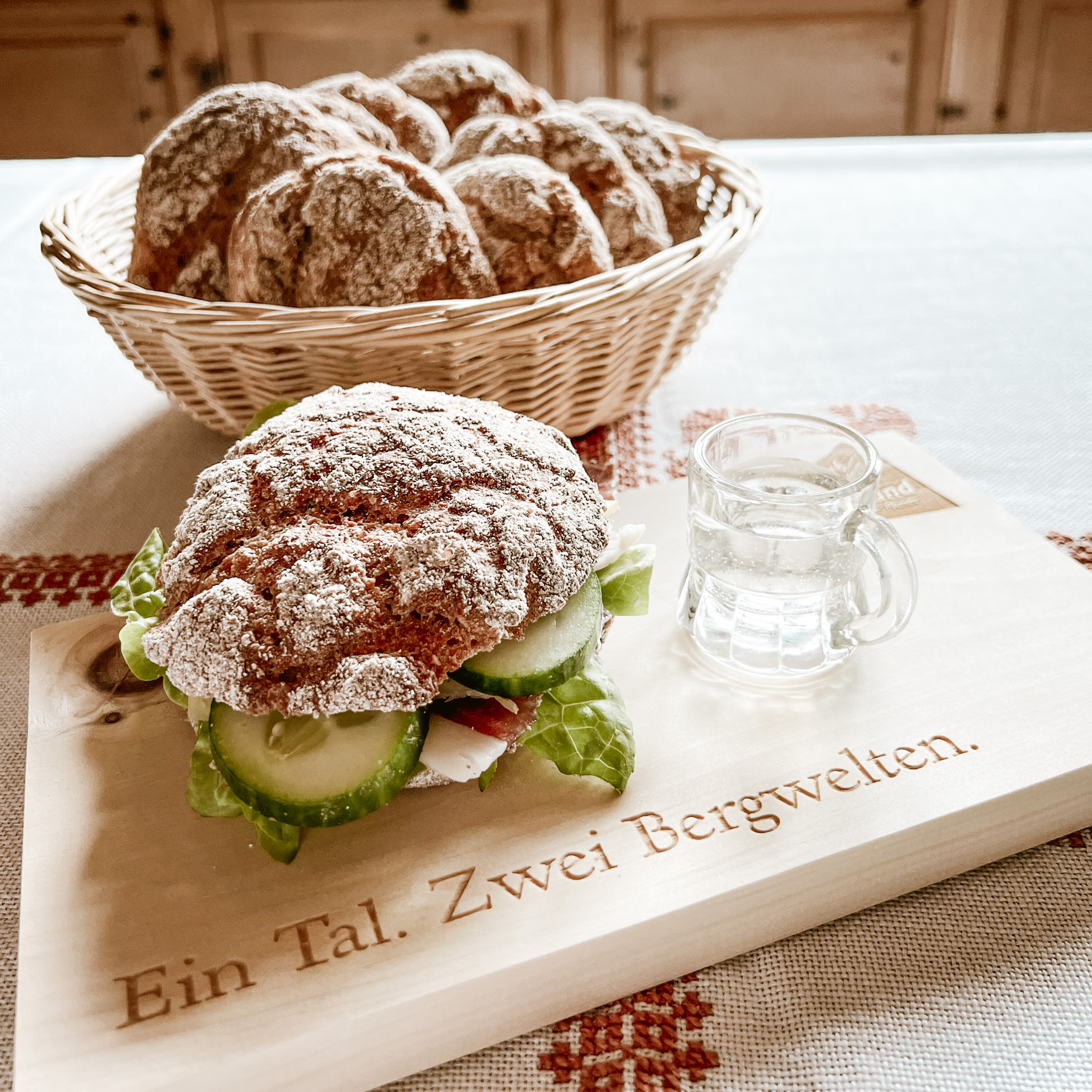 Sich nach einer ausgiebigen Wanderung mit einem selbst gebackenen Brot zu belohnen – nenn uns etwas Schöneres. In diesem Blogbeitrag möchten wir euch ein „gschmackiges“ Rezept für das perfekte Gipfelmarendbrot vorstellen. Brotbacken ist nicht nur eine wunderbare Möglichkeit, die Zutaten und den Prozess selbst in der Hand zu haben, sondern es bringt auch einen Hauch von traditionellem Handwerk und Heimatgefühl in die eigene Küche. Das Brot kann natürlich beliebig belegt werden.