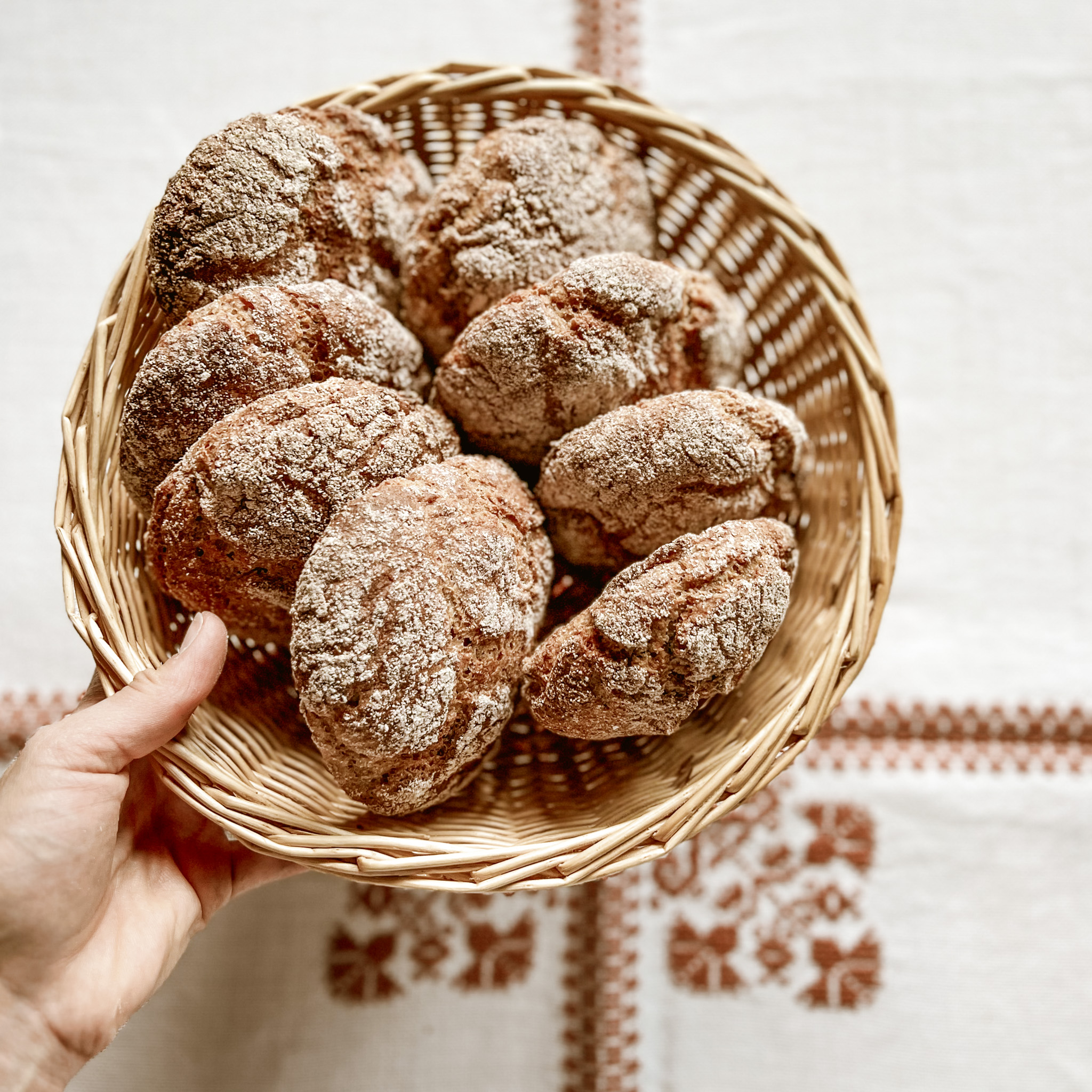 ➡️ Brotlaibe circa 30 Minuten (je nach gewünschter Bräune) im Backrohr bei 230 Grad Heißluft backen.