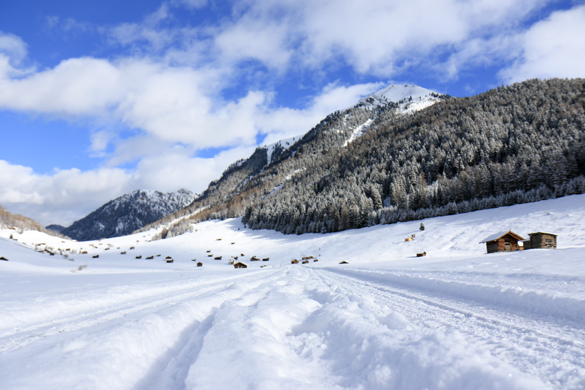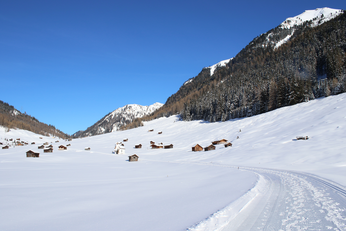 The Pfundser Tschey is a high valley, which, due to its use in the form of single-storey mountain meadows with grazing and the resulting barns and cooking huts, is an extremely attractive area in terms of landscape and at the same time has a high botanical and ornithological value, which is the result of the mostly extensive cultivation. The stele directs the view to the opposite spring moor and a former water whale still visible on the slope.