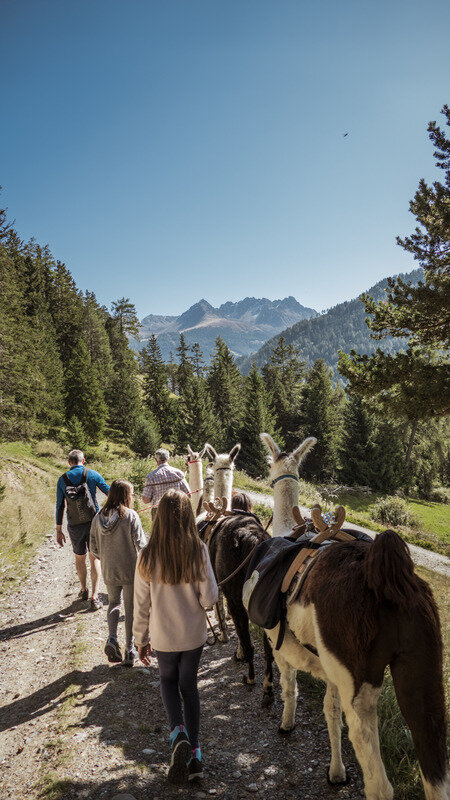 Twice a week there is the opportunity to go on a leisurely hike with Andreas and his llamas. You lead the llamas yourself by the halter and learn interesting facts about the origin and special features of these animals, as well as about Nauders and its landscape. The hike is also suitable for families.