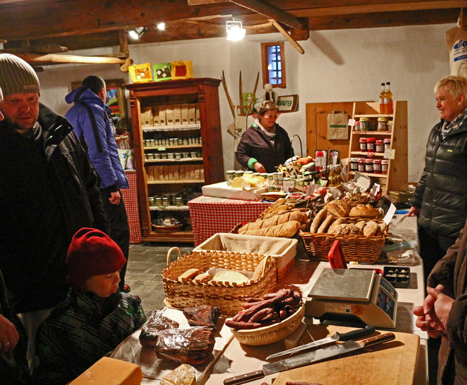 The product range includes delicious farmhouse bread, homemade jams and juices, honey, schnapps and liqueurs, various cheeses, bacon, cakes, herbs and spices, Swiss stone pine and mountain hay cushions and nice handmade souvenirs.