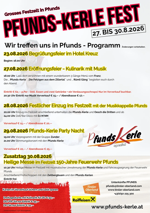 | Sunday, 23.08.2026, 16:00 - | Thursday, 27.08.2026, 18:00 - | Friday, 28.08.2026, 20:00 - |
