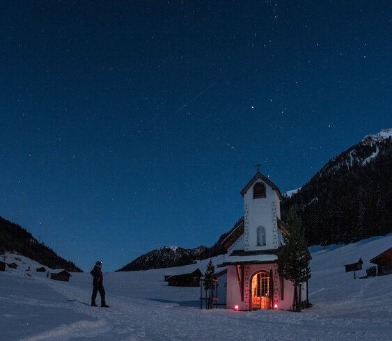 Experience magical nights under the clear winter stars: During a cozy walk through the snow-covered Pfundser Tschey, you can observe the fascinating phases of the moon up close. Warming punch, mullet wine and a light snack round off this special evening in a truly enchanting atmosphere.