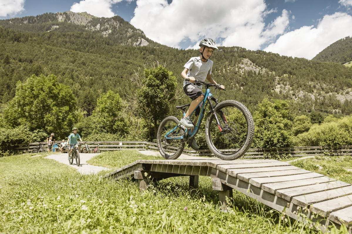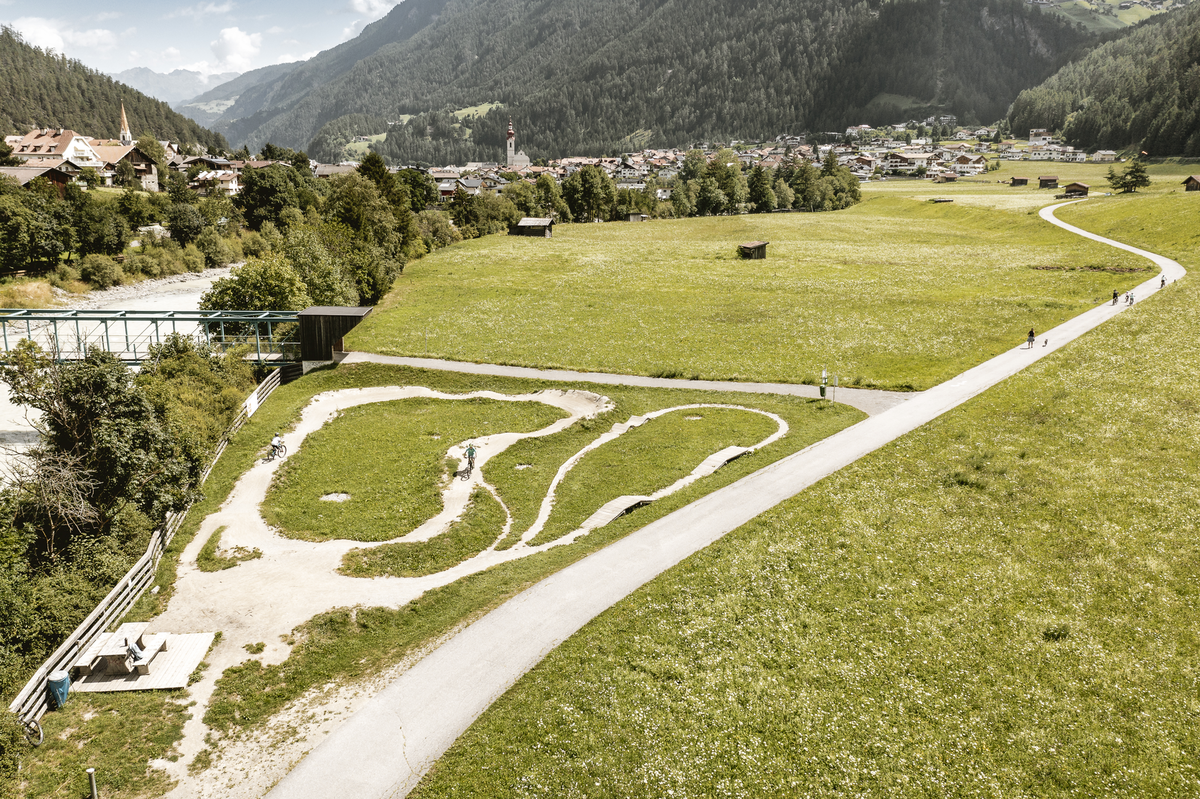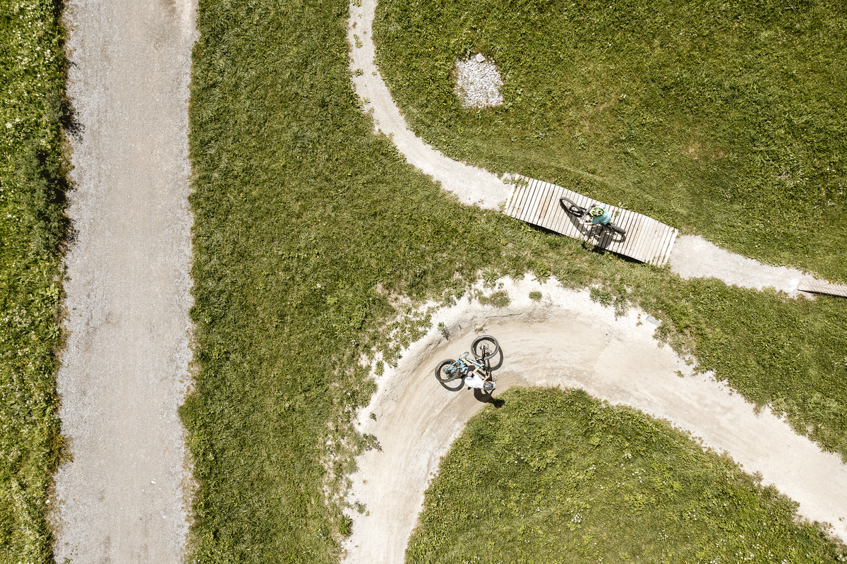 The Inntrack is a specially created mountain bike trail. The aim is to build up speed on it without pedalling by pushing the body up from the depths of the bike.