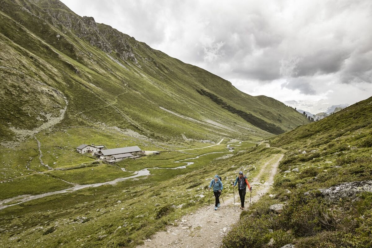 Drive to Greit up to the Tscheylücke. From there the path leads through the beautiful high valley past the Maria Schnee chapel to a fork in the road. Here the path branches off to the right towards Platzertal. Follow the signposting always towards Platzer Alm. Pass the dilapidated buildings of the ore and silver processing and continue to the alpine pasture. The Platzer Alm is the highest altitude where milk, butter and cheese are processed. From the alpine pasture a marked path in the meadow area leads gently up to the back or saddle. The trail then descends slightly to the ground and finally climbs slightly to the summit of the Lahnkopf. The descent is often through meadows and the path leads to the Gschneier Alm, which is located in a clearing. Finally, the path leads gently down through the forest to the Greiter Säge.