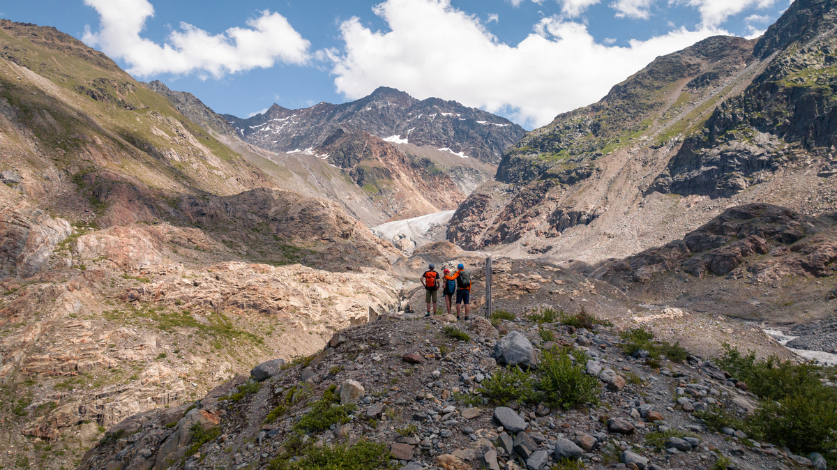 Enjoy the impressive natural landscape of the Kaunertal as you travel by public bus along the Kaunertal Glacier Panorama Road. Once you arrive at Oberbirg, our hiking guide will take you into alpine terrain. The hike leads over steep paths and impressive scenery along the wild glacier stream to the glacier tongue. We return via the shimmering red rocks of the Fernergries.