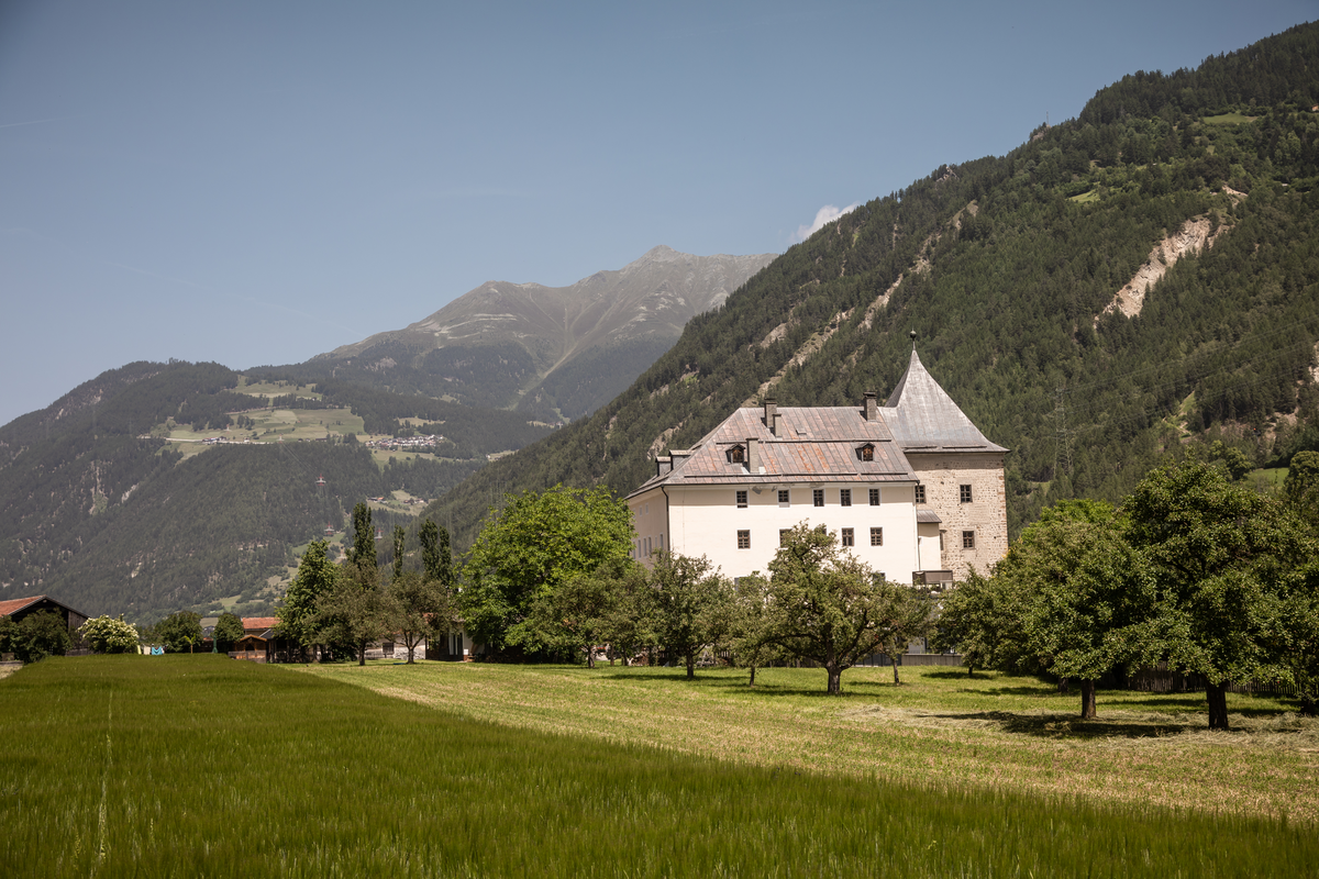 The meeting point is below the castle in front of the municipal office Ried im Oberinntal.