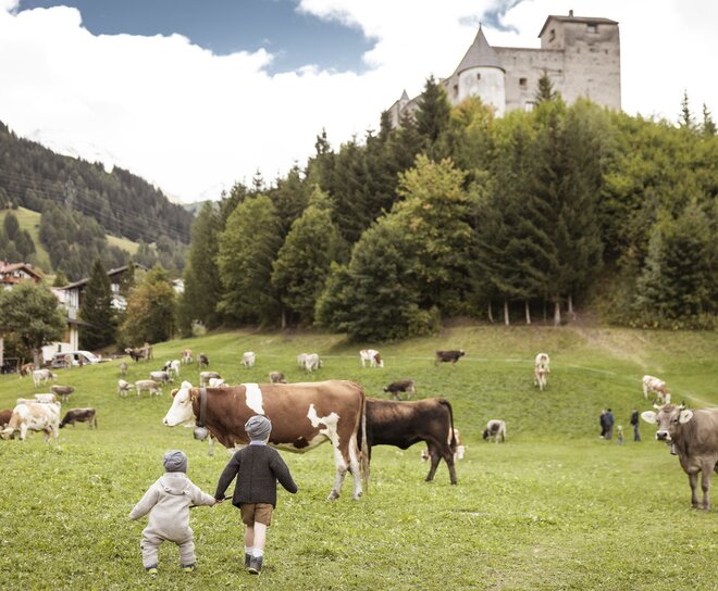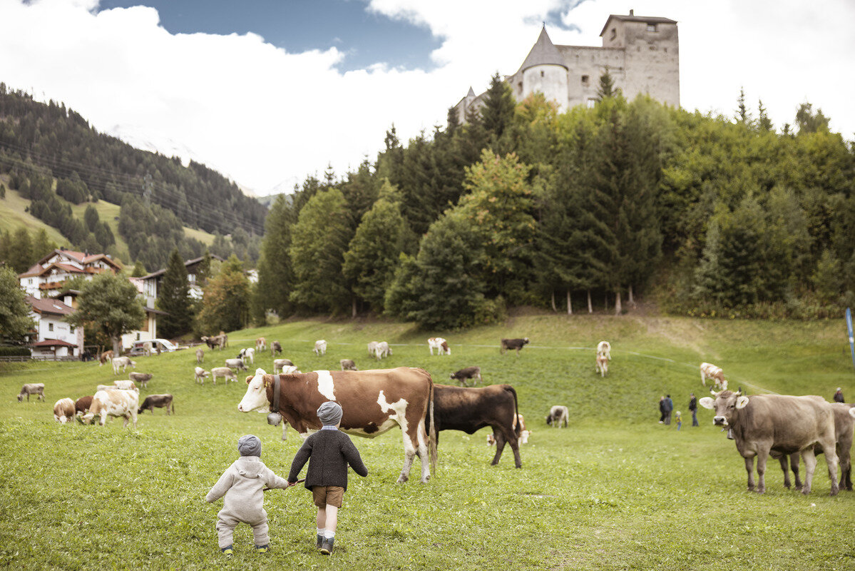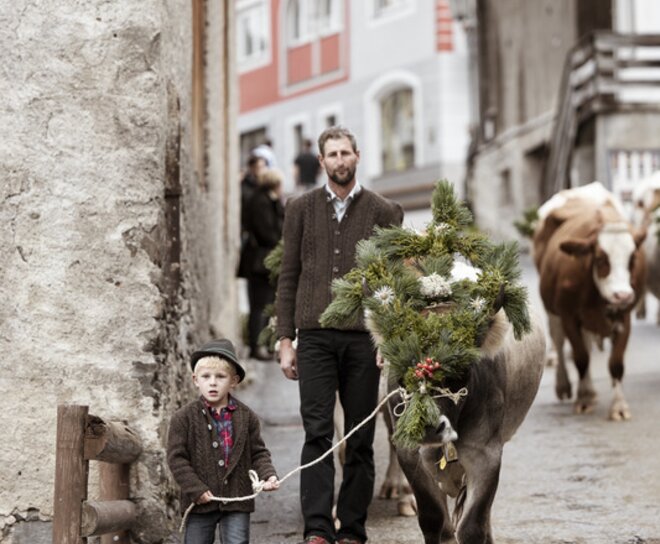 The festively decorated animals are driven back to the valley after their summer retreat on the alpine pastures.