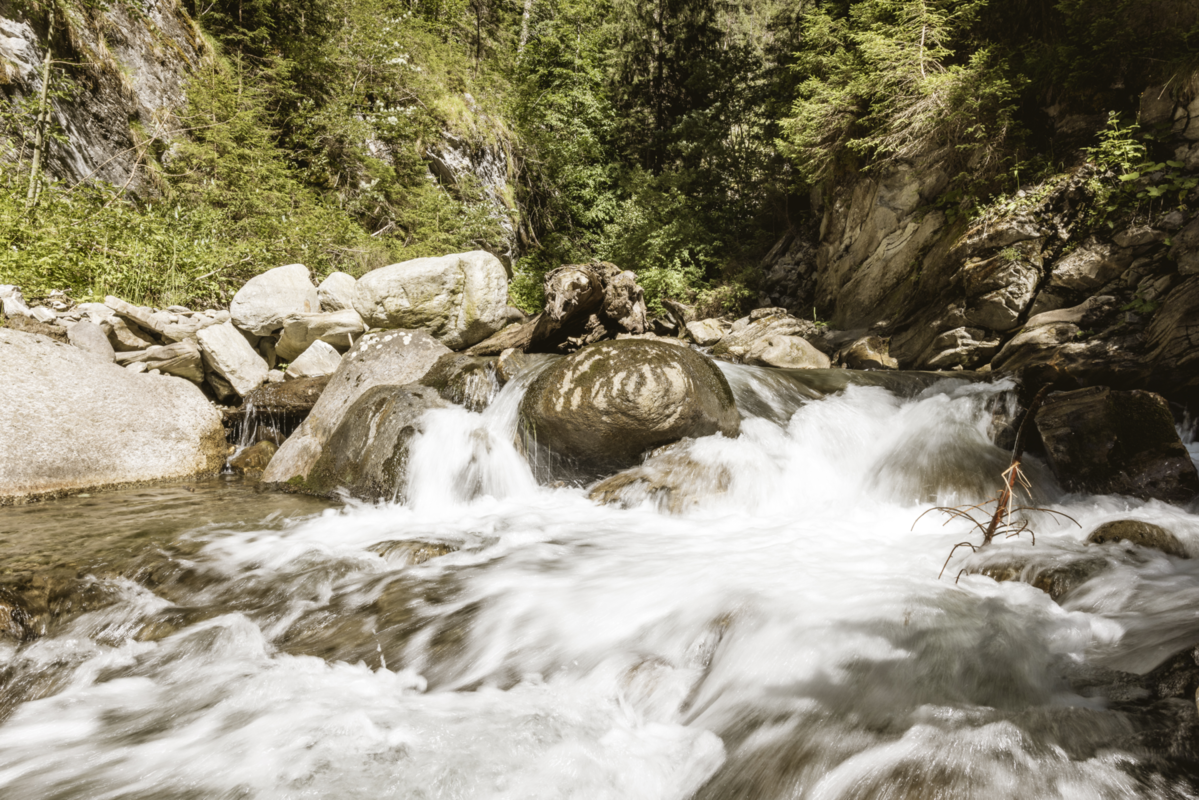 One of the most popular hikes is this wild and romantic gorge, home to rare ferns, grasses, among others. Start at the roundabout in Dorf, following the Radurschl brook upstream. The path becomes narrower as you continue along it, leading over several bridges, including a suspension bridge, past rock overhangs and constantly accompanied by the sound of the roaring water. Top tip for hot summer days: the moisture in the air along this gorge walk is very refreshing. When you have almost reached the end of the gorge, you can choose between the path returning via Greit, or the Radurschl path. A small ascent brings you to the hamlet of Greit, where the Berghof (restaurant Thu & Sun) invites you to make a refreshing pitstop.