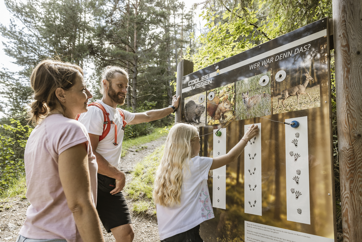 At the same time they playfully learn new things about the flora and fauna in the Tyrolean Oberland. With great attention to detail, 17 knowledge and puzzle stations were created.